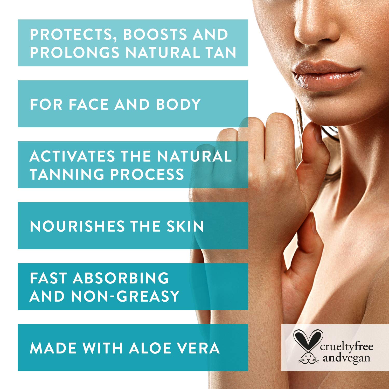 EcoTan Face and Body Accelerator helps you to achieve that deep golden colour in half the time and make your tan last for a lot longer. Use daily before, during and after sun exposure to prolong the life of your natural tan, (contains no sunscreen). Special ingredients work in conjunction with the skins natural melanin to speed up the rate at which you tan. Suitable for all skin types.