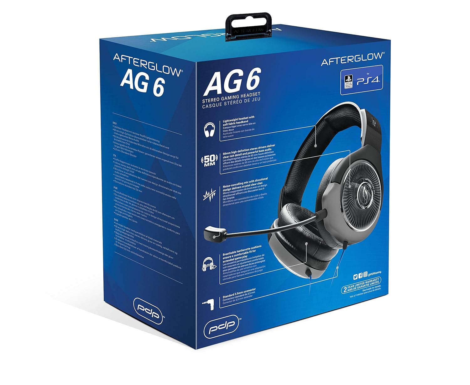 PDP PS4 Afterglow AG 6 Wired Gaming Headset, 051-077-NA-BK