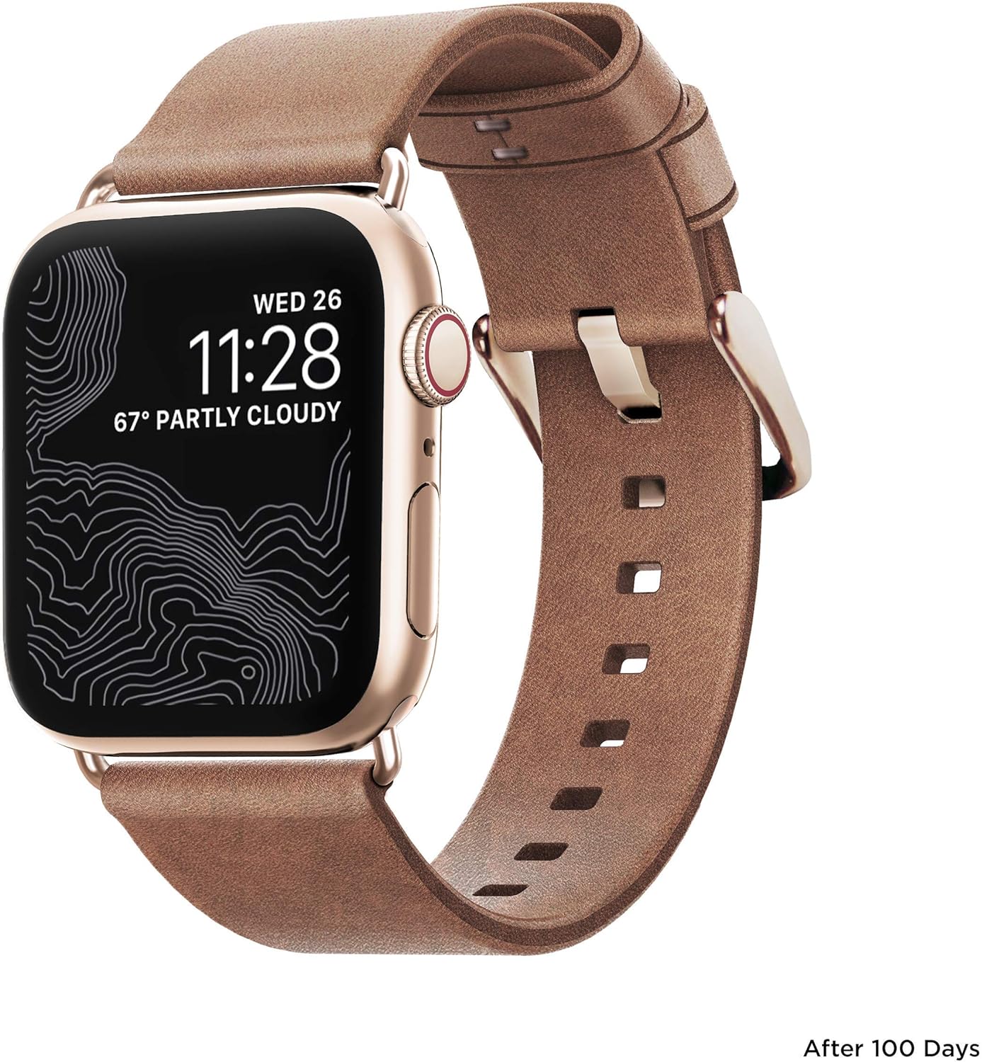 Nomad Modern Strap (Slim) for Apple Watch 40mm/38mm | Natural Horween Leather | Gold Hardware