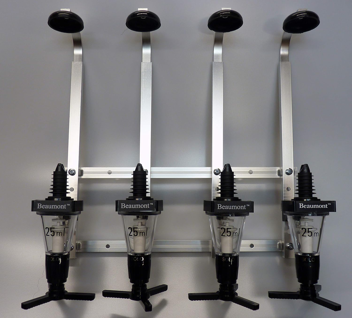 Beaumont 4 Bottle Wall Fixing Bottle Bracket & 4 x 25ml Solo Optic Spirit Measure Set
