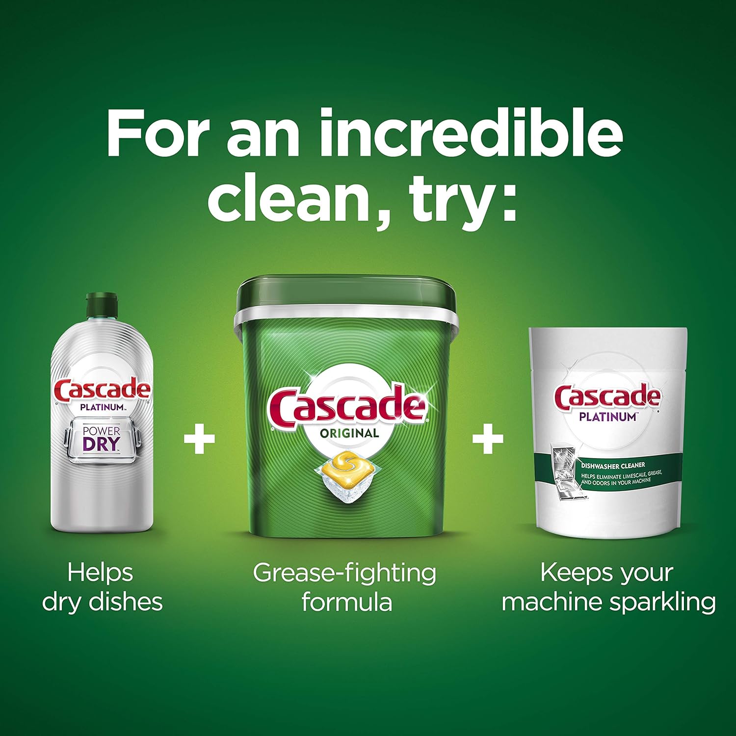 Cascade Original ActionPacs dishwasher detergent gives you a citrusy lemon scent, while cleaning tough, burnt and stuck-on messes in a single wash with one easy-to-use pac. And it’s formulated with the grease-fighting power of Dawn to leave your dishes virtually spotless. You got dirty dishes? We got this.