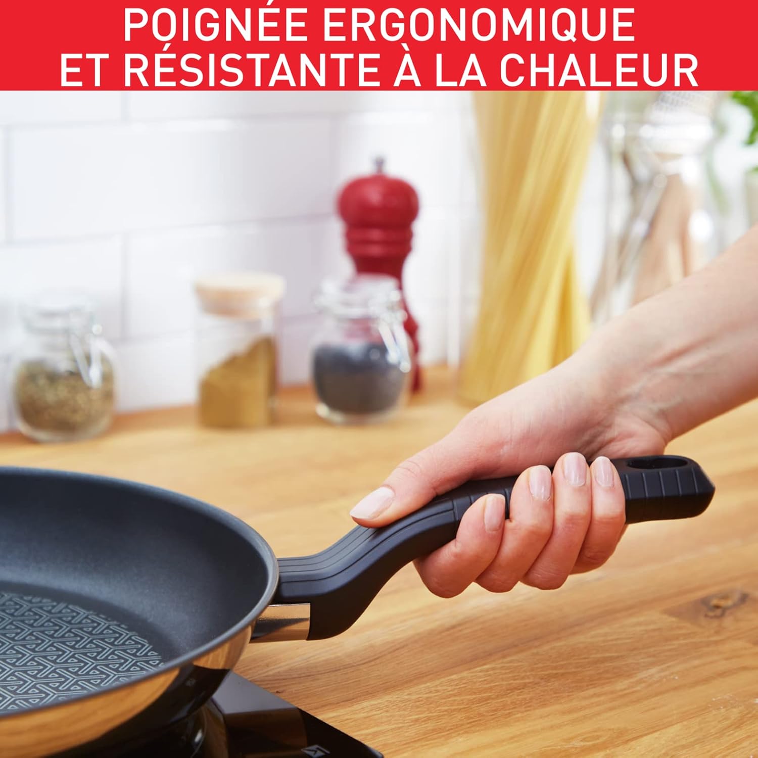 The Comfort Max Stirfry uses the high quality stainless steel for a durable cookware. It comes with Tefal’s Thermospot technology, this heat indicator lets you know when your pan is ready to start cooking by turning to a solid red dot at the optimum temperature.