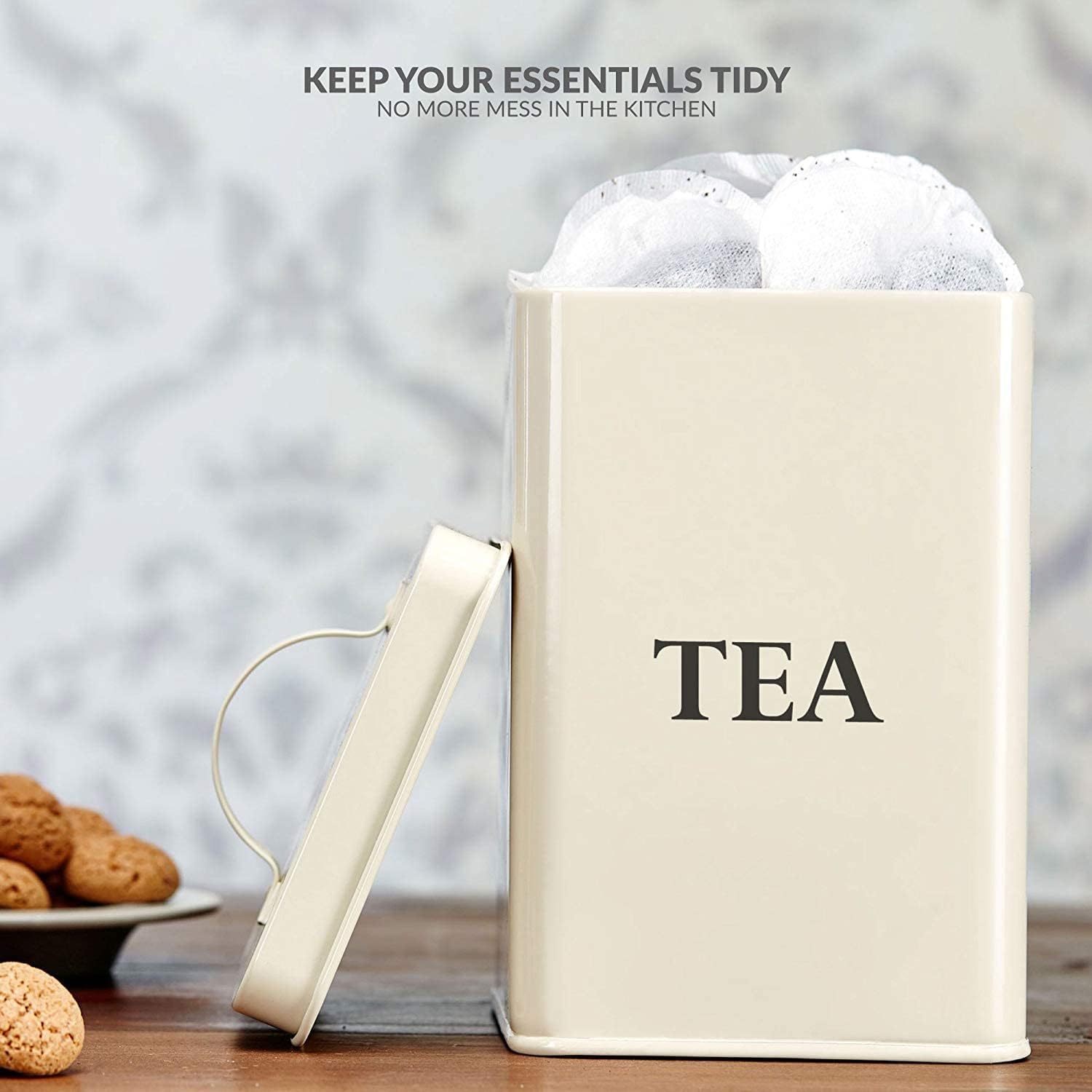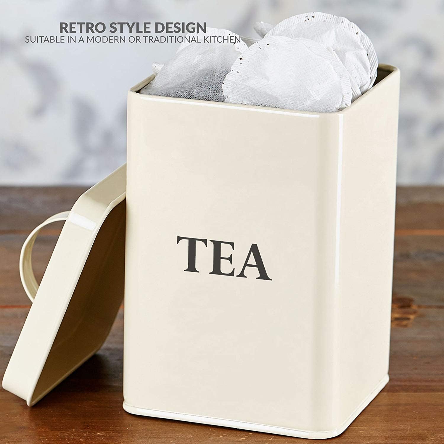 Andrew James Tea Coffee Sugar Canisters | Vintage Style Kitchen Storage Set | Rust Resistant Powder Coated Iron Caddies | Store Coffee Beans Granules Teabags Sugar | Part of The Vintage Range | Cream