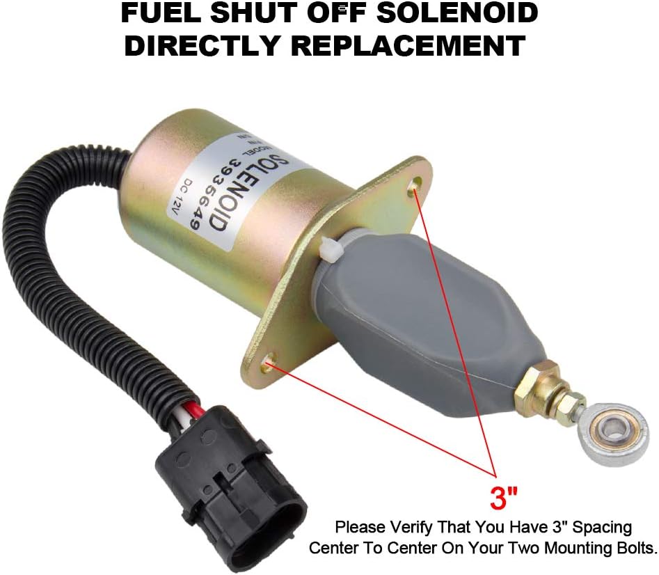 Brand new aftermarket stop solenoid for replacing the stop solenoid on many Cummins 5.9L and 8.3L diesel engines requiring part number 3935649. Please measure the bolt spacing on your solenoid before ordering. Center to center bolt spacing of this solenoid measures 3″ inches.