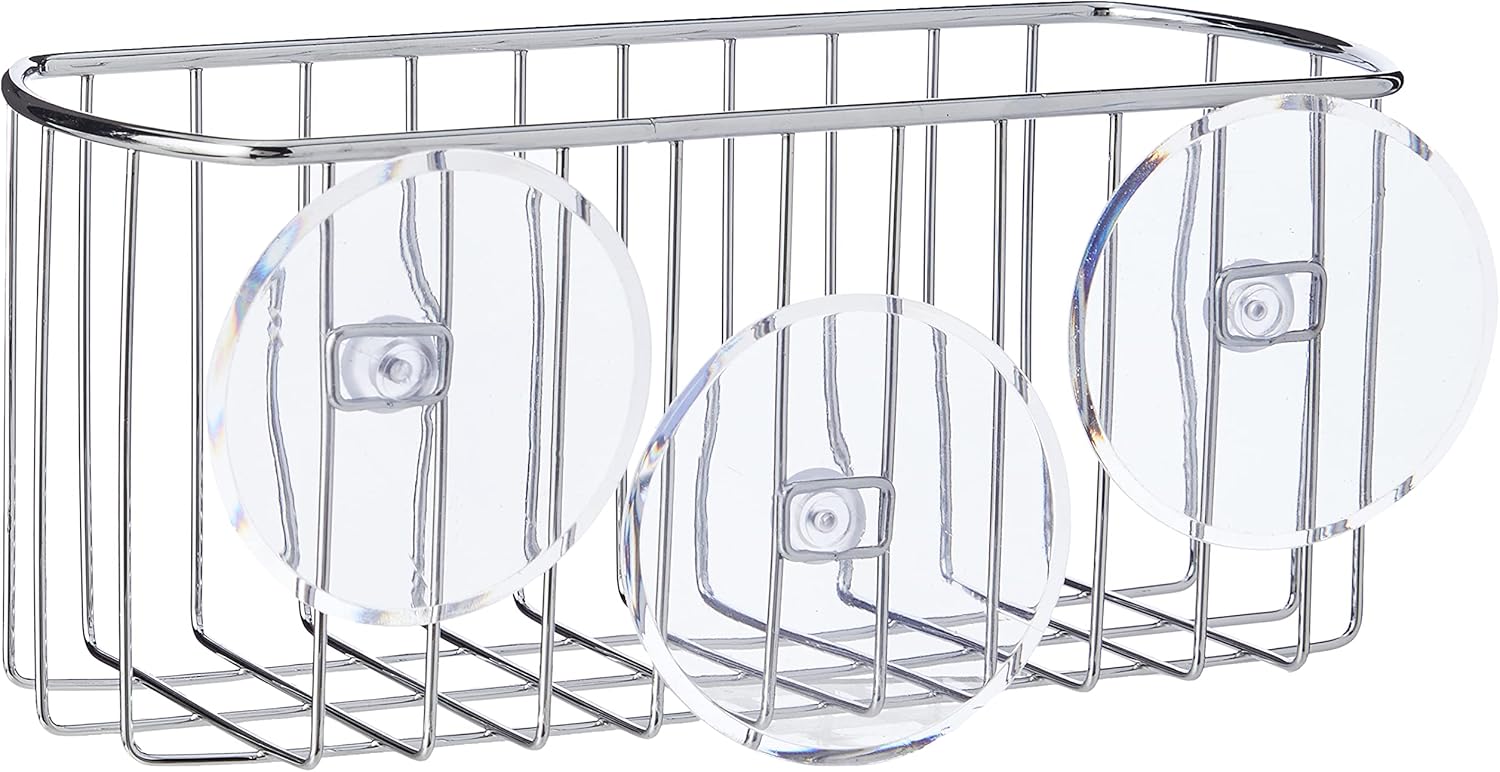iDesign Basket with Suction Cups, Small Metal Shelf with no Drilling, Compact Shower Caddy for Bathroom Accessories, Chrome