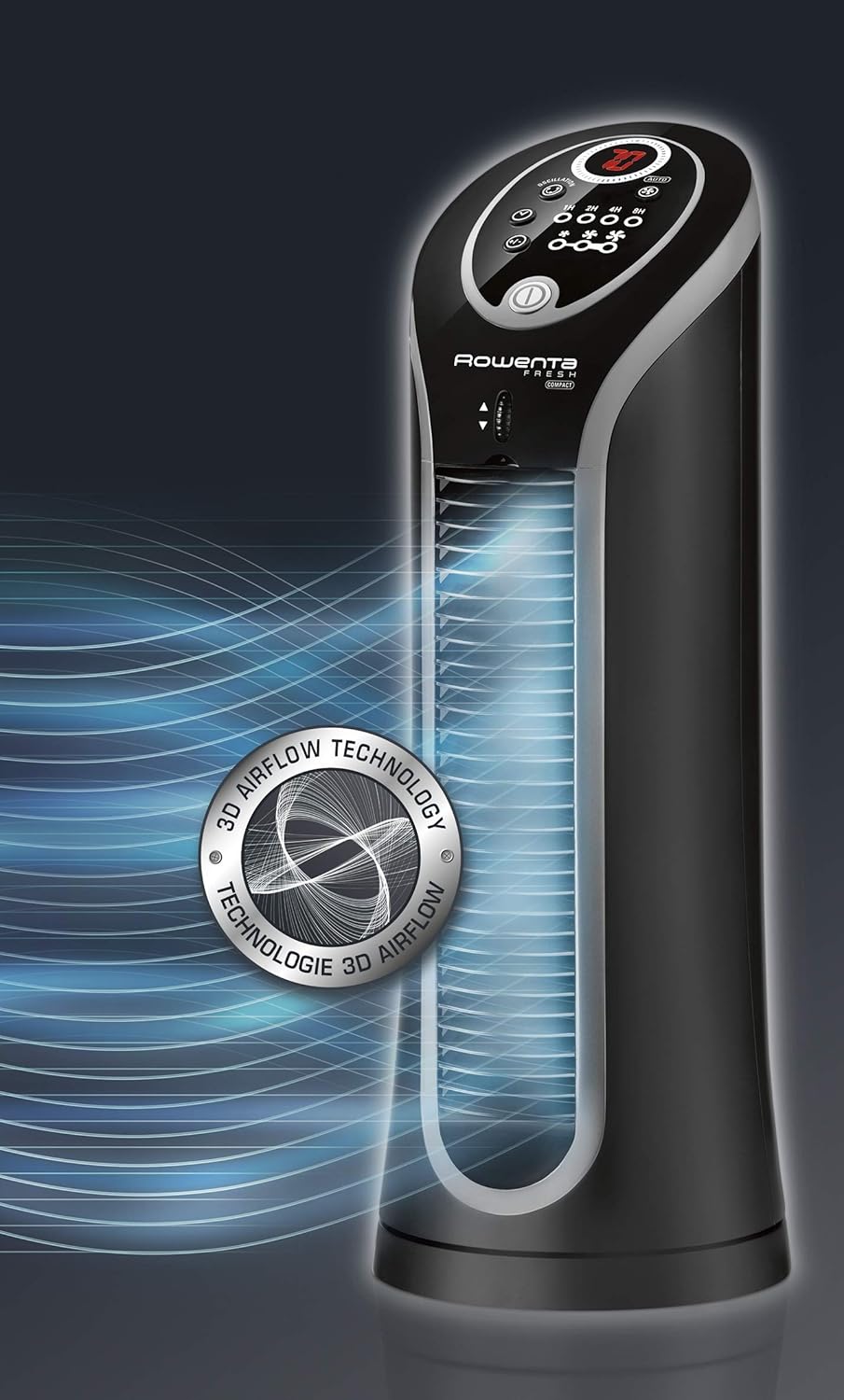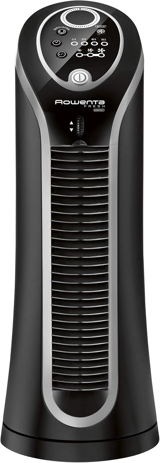 Rowenta Vu6211 Fresh Compact Tower Fan, Small, Black/Silver