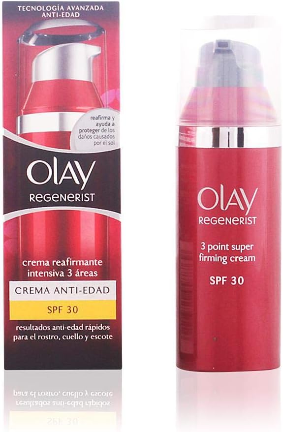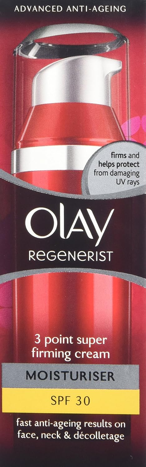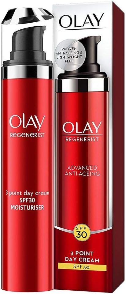 Renew your skin’s natural glow and protect it against harmful UVA and UVB rays with Olay Regenerist Day Face Cream with SPF30. Olay’s hydrating & anti-ageing facial cream is formulated for normal, dry and oily skin types. – Daily face cream visibly renews your skin’s natural glow – Specifically designed with SPF30 to help protect skin from damaging UVA and UVB rays – Formulated with Vitamin B3 & Amino Peptides, two powerful skin care ingredients – Delivers active ingredients 10 layers deep into skin surface – Facial Cream Intensely hydrates skin for 24 hours – Improves skin texture by encouraging surface cell renewal – Use daily for 28 days. See true skin appearance transformation What’s inside: Peptide: Peptides are proven to reduce the appearance of fine lines and wrinkles, while replenishing and rejuvenating your skin. Niacinamide: Vitamin B3 (aka Niacinamide) is scientifically proven to benefit both young and mature skin, especially when it comes to reducing uneven skin tone or the appearance of wrinkles. To use: Use Olay Regenerist face moisturiser with SPF30 in the morning on cleansed skin, after any targeted treatments. Smooth cream evenly over your entire face. Ingredients: Aqua, Ethylhexyl Methoxycinnamate, Glycerin, Niacinamide, Tapioca Starch, Butyl Methoxydibenzoylmethane, Dimethicone, Ethylhexyl Methoxycrylene, Tocopheryl Acetate, Peucedanum Graveolens Extract, Palmitoyl Pentapeptide-4, Panthenol, Caprylyl Glycol, Dimethiconol, Butylene Glycol, Acrylamide/Sodium Acryloyldimethyltaurate Copolymer, Behenyl Alcohol, Stearyl Alcohol, Cetyl Alcohol, 1-2-Hexanediol, C13-14 Alkane, Peg-100 Stearate, Titanium Dioxide, Laureth-7, Cetearyl Alcohol, Cetearyl Glucoside, Polymethylsilsesquioxane, Sodium Peg-7 Olive Oil Carboxylate, Stearic Acid, Disodium Edta, Bht, Xanthan Gum, Ammonium Polyacrylate, Phenoxyethanol, Sodium Benzoate, Benzyl Alcohol, Methylparaben, Propylparaben, Parfum, Linalool, Hexyl Cinnamal, Benzyl Salicylate, Limonene, Alpha-Iso