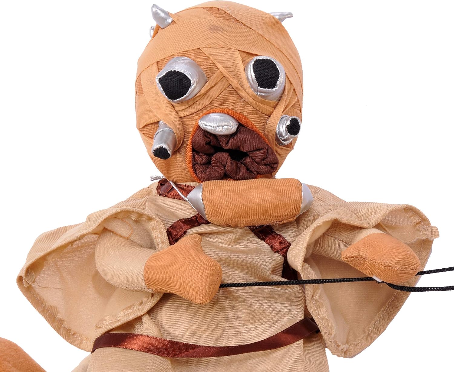 | Components | Jumpsuit with body armor, cape, belt, and mask (lightsaber available separately) | Full-body stretch jumpsuit, cape, and removable helmet | Jumpsuit with attached boot-tops, cape, belt and mask | Photo-real printed jumpsuit with attached bandolier and pouch, shoe covers, and gloves; and mask | Faux-fur covered mask and bodysuit, latex hands, latex bandolier and pouch | Printed jumpsuit with EVA bandolier, hand covers, shoe covers, and mask with attached goggles |