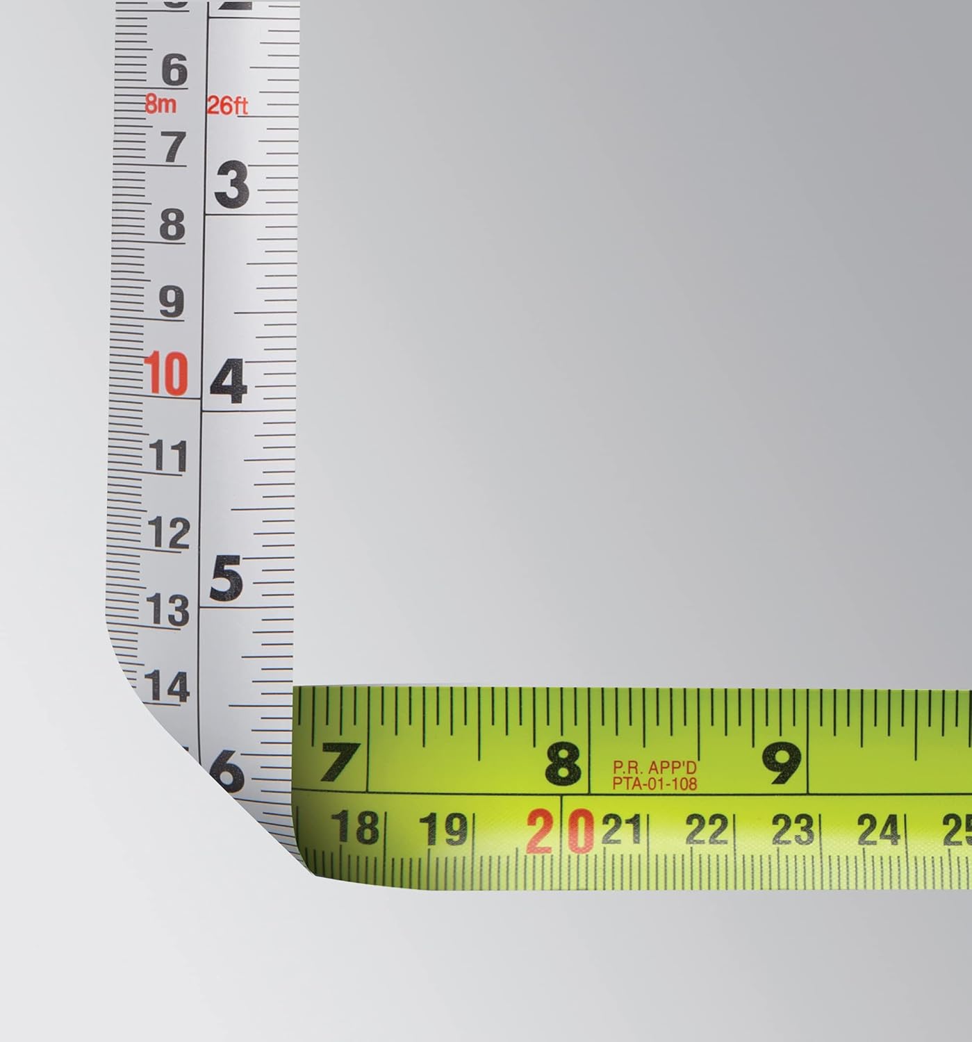 Komelon 8m / 26ft PowerBlade Tape Measure MPT87E Magnetic Tip Hi-Viz BladeStock code: KOMMPT826EThe Komelon 8m / 26ft PowerBlade Tape has a dura NY nylon coated steel dual printed blade with vertical blade markings on the reverse and patented hi-vis blade printing. The Dura NY nylon coating offers superior quality that lasts up to 15 times longer.It’s ergonomically designed ABS case with a moulded rubber grip provides increased comfort. The edges of the blade have been deburred and it offers measurements in both metric and imperial graduations. It also has a magnetic end hook.Length: 8m / 26ft.Blade Width: 27mm.Accuracy: EC Class II.