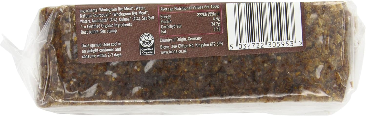 Biona’s organic Rye Bread with Amaranth and Quinoa is traditionally made in Germany by organic bakers. It is crammed full of crunchy, nutty wholegrains which are an essential part of a healthy, fibre-rich diet. Amaranth and quinoa are native to South America and both have a high protein content.