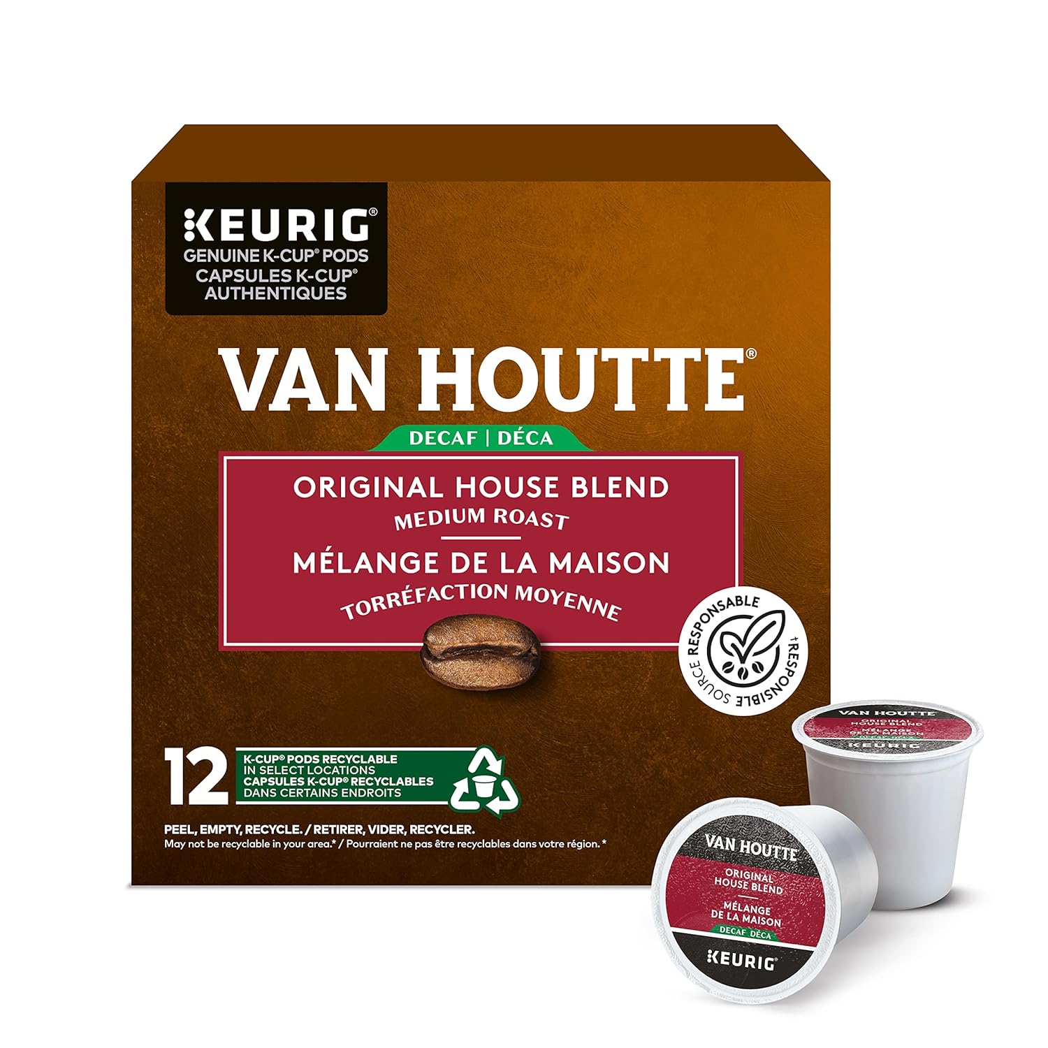 Van Houtte Decaffeinated Medium Roast Coffee, 12-Count K-Cups for Keurig Brewers (Pack of 1)