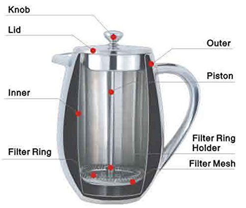 Cuisinox French Press, 1 quart, Silver