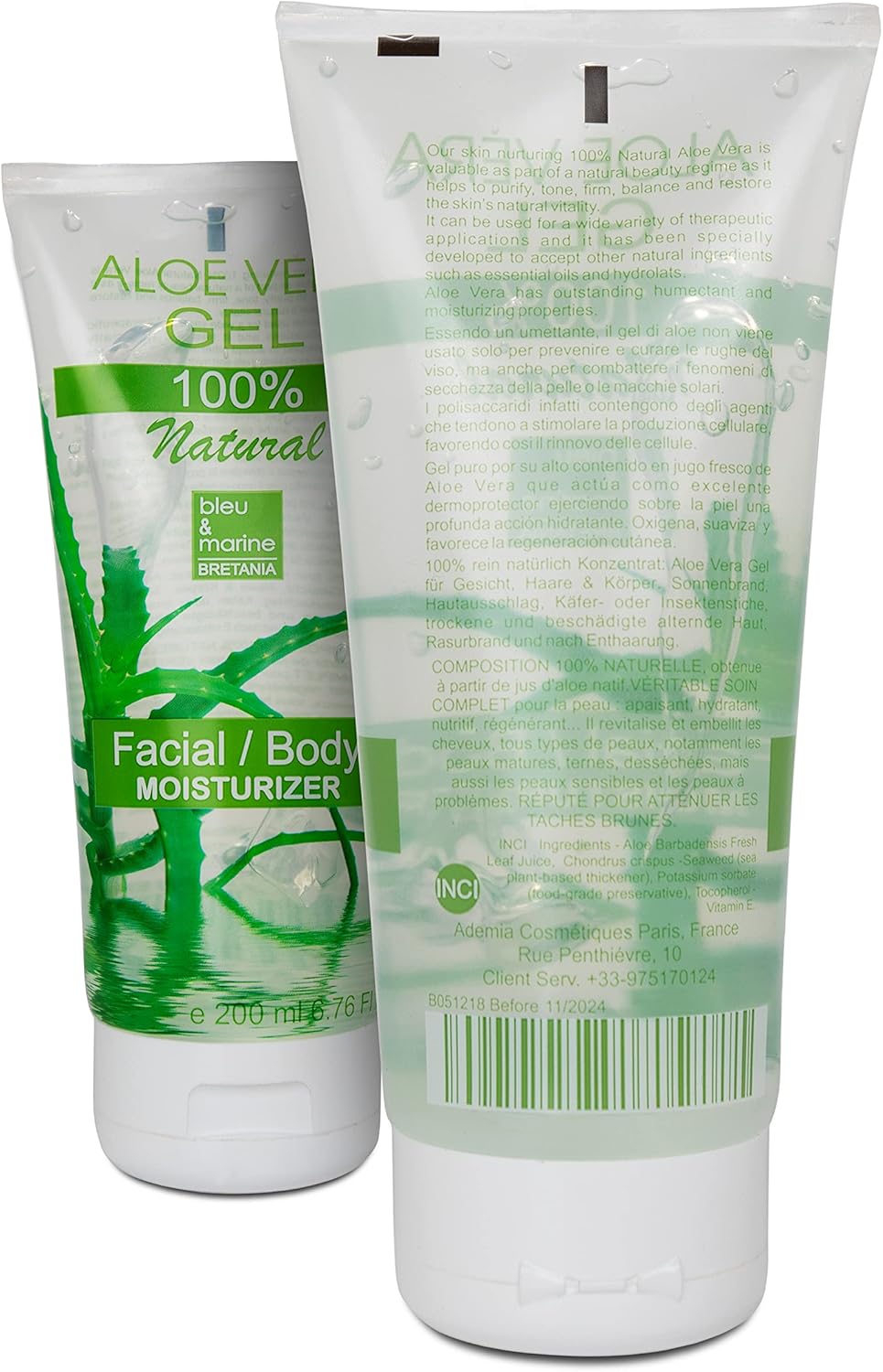 100% Natural Aloe Vera Gel – Pump Bottle (2 x 200 ml) – Face Hair Body – After Sun – After Waxing – Healing Eczema Sun Burn Razor Bumps – Prevents Stretch Marks – Anti Scars by bleumarine Bretania