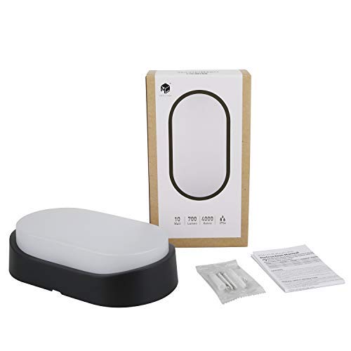 10W LED 4000K IP54 Flush Wall Mounted Oval Bulkhead Light Fitting with Black Trim – Perfect for Indoor, Outdoor, Bath, Kitchen, Hallway, Corridor, Utility, Garden, Shed, Workshop, Patio etc – 1 Pack