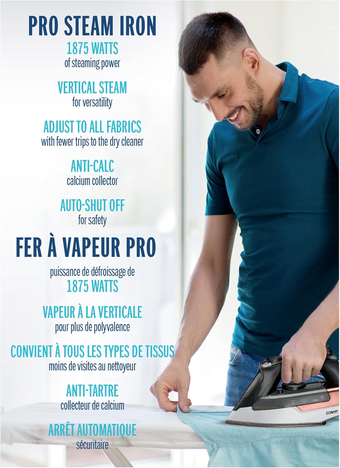 1875 Watt Self Cleaning Steam Iron, with 3-Way Auto Shut Off and Nano Titanium Soleplate