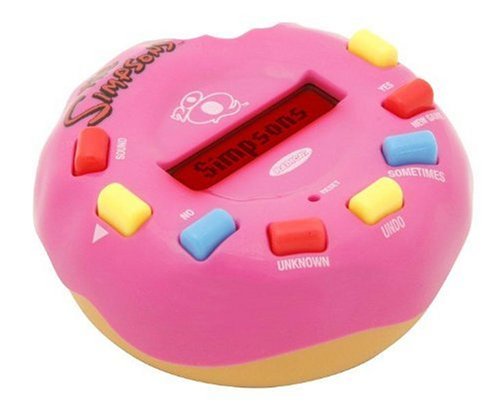 20Q knows everything Simpson’s ahs a backlit screen for better viewing indoors or at night. It is an all new Simpsons’ banter. This has a trans-reflective screen. The undo button allows you to change your answer.