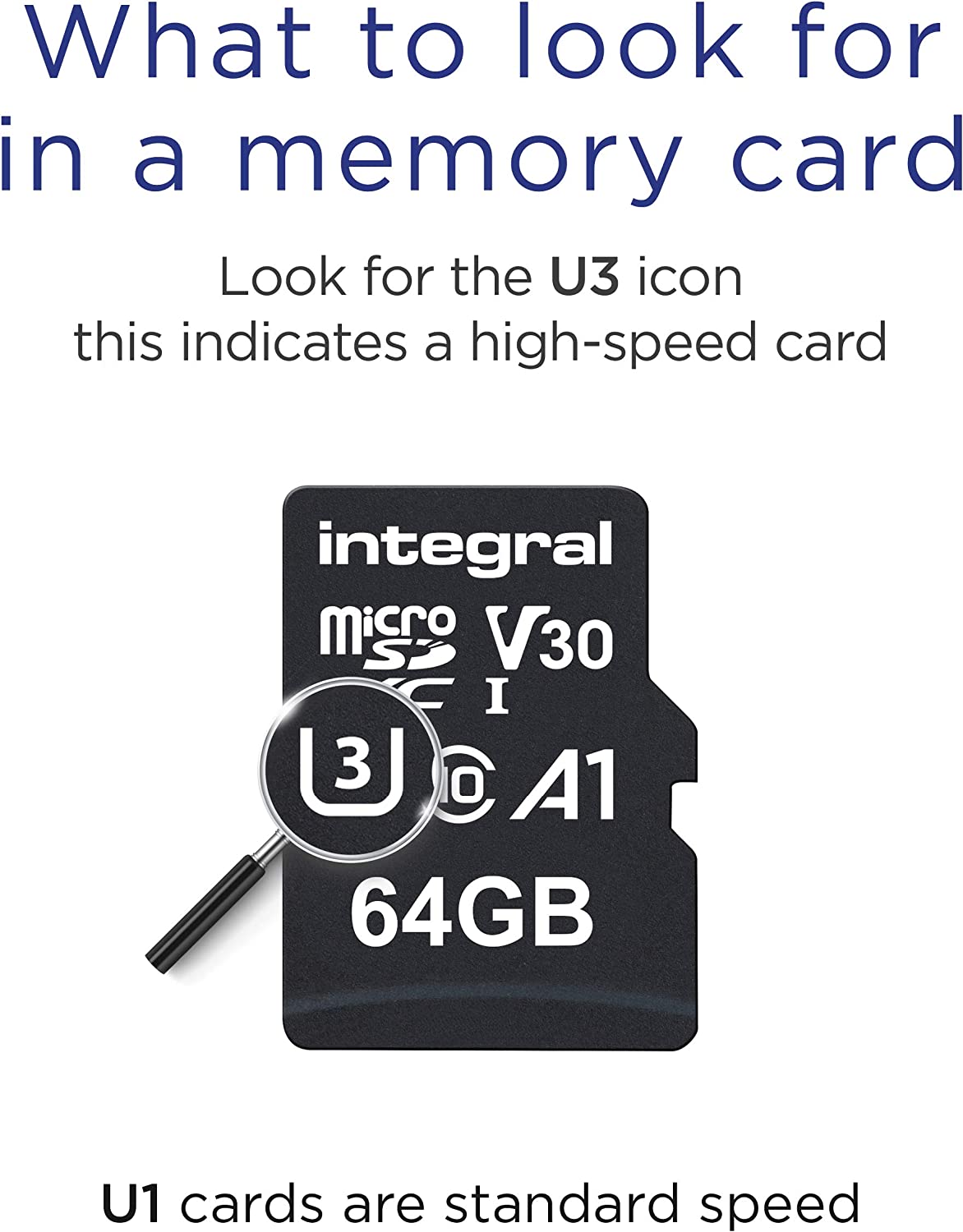 Look for the U3 icon – This indicates a high-speed card. U1 cards are standard speed