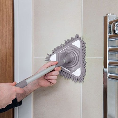 Handy bathroom dusting hand mop wand. With long super soft woven microfiber strands specially designed to collect and remove dirt. The triangular shaped dusting head and neat adjustable metal telescopic handle allows easy cleaning for all those hard to reach areas and corners. Offers an extra arms length. Great for effortless cleaning of bathroom or kitchen wall and floor tiles. Reach only suitable for standard room ceiling heights of approx. 2.5 metres (7-8ft). Comes with handy hanging hook mop end. Dusting head is machine washable at up to 40 degrees. Finished in metallic silver and graphite colour. Dimensions w15.5 (6″)x d15.5 (6″) with handle non extended 41cm (16 inches) up to 68cm (27 inches). Designed for modern everyday living. ADDIS part of the home since 1780… based in the UK, we have a proud 237 year old history of design, manufacture and supply of housewares. The ADDIS brand still stands today, as it has for previous generations, for value, quality and innovation.