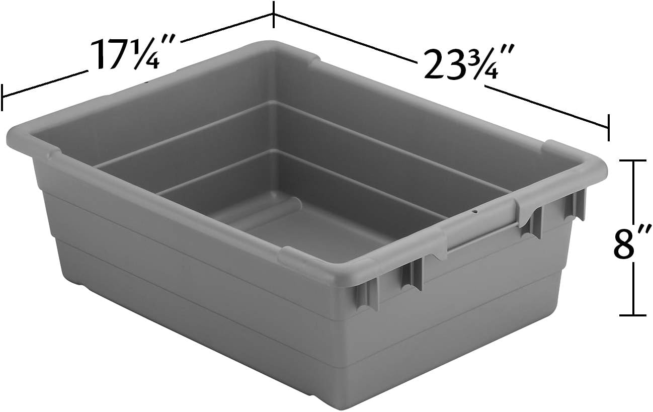 - TOTE DIMENSIONS- Outside (23-3/4-Inch x 17-1/4-Inch x 8-Inch), Inside Bottom (19-1/4-Inch x 14-Inch) holds 9.81 gallons – Case of 6