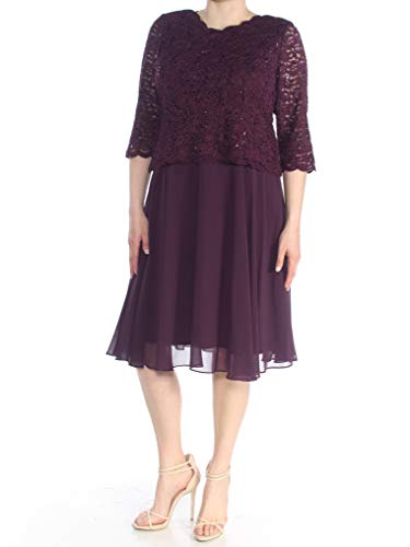 Alex Evenings Women’s Tea Length Sequin Mock Dress (Petite and Regular Sizes), Deep Plum, 6