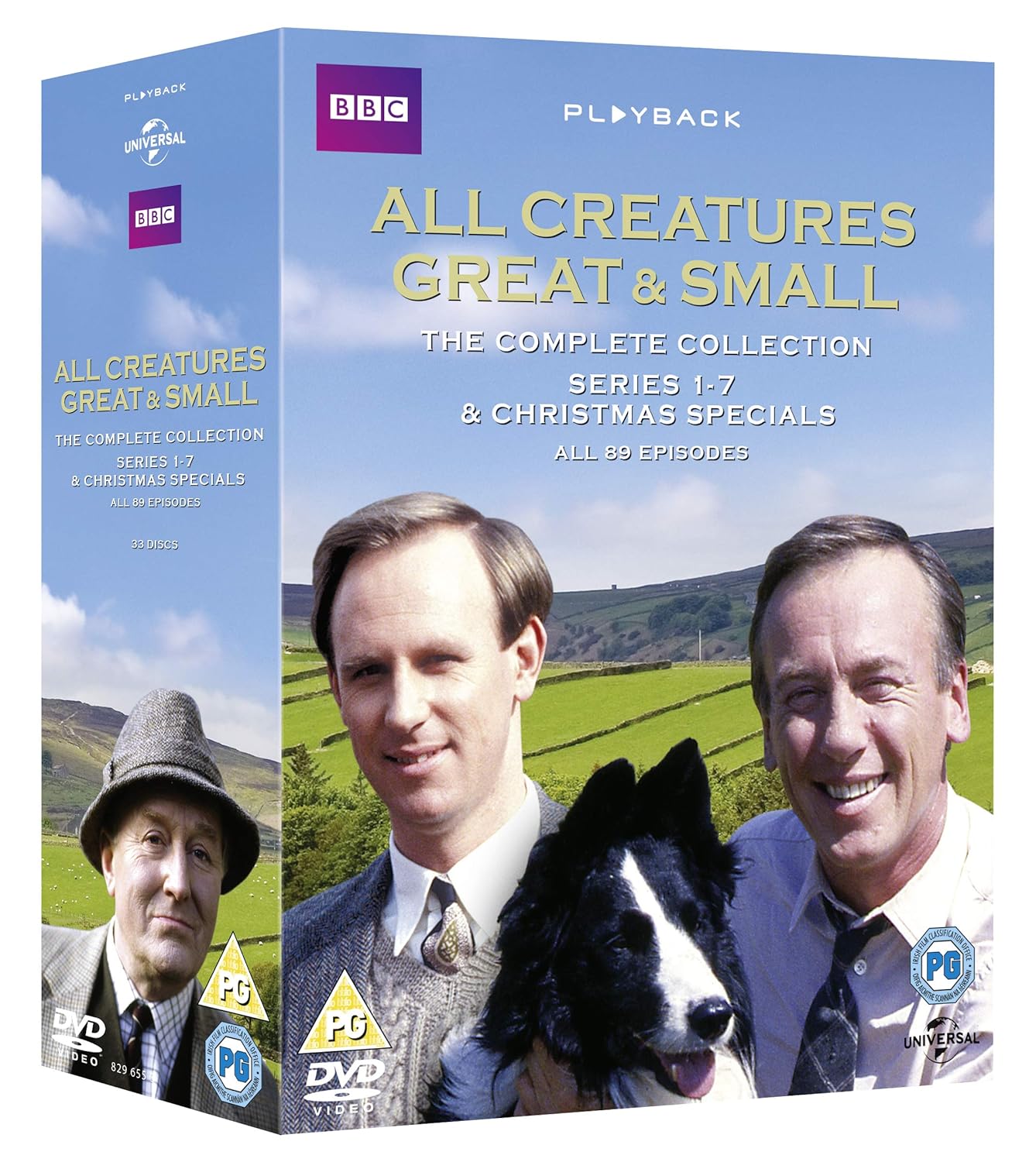 United Kingdom released, PAL/Region 2 DVD: it WILL NOT play on standard US DVD player. You need multi-region PAL/NTSC DVD player to view it in USA/Canada: LANGUAGES: English ( Dolby Digital 2.0 ), English ( Mono ), English ( Subtitles ), SPECIAL FEATURES: Box Set, Interactive Menu, Multi-DVD Set, Scene Access, SYNOPSIS: Siegfried, James and Tristan – our three favourite veterinarians – always have their work cut out for them at their country practice in the verdant Yorkshire Dales. Although life is never less than testing, there is always great satisfaction in the valuable work they do. So as life moves slowly through peacetime and wartime, why not join us in a simpler, more tranquil time, as we help the sick and injured back to health, whether they have two legs, four legs, hooves, beaks or paws. All Creatures Great And Small: The Complete Collection – Series 1-7 & Christmas Specials – All 89 Episodes. SCREENED/AWARDED AT: BAFTA Awards, Emmy Awards, …All Creatures Great & Small – Complete Collection (Series 1-7) – 33-DVD Box Set ( All Creatures Great and Small )