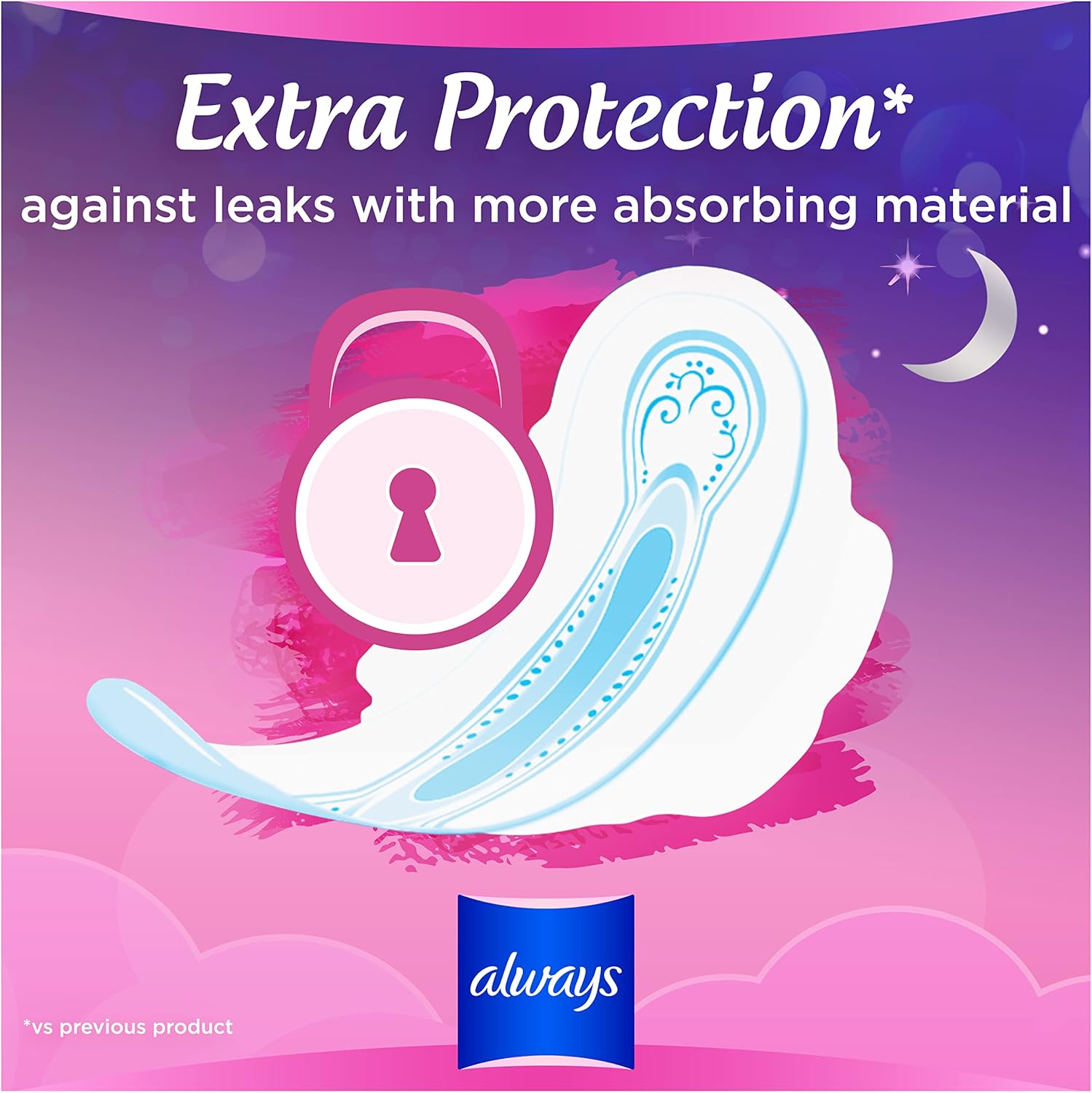 Always Sensitive Night Ultra Sanitary Towels Wings 10 Pads, Soft Like Cotton, Tested to be Gentle, Scent Free, 10 Packs of 10 Count (Total 100 Count), Size 3
