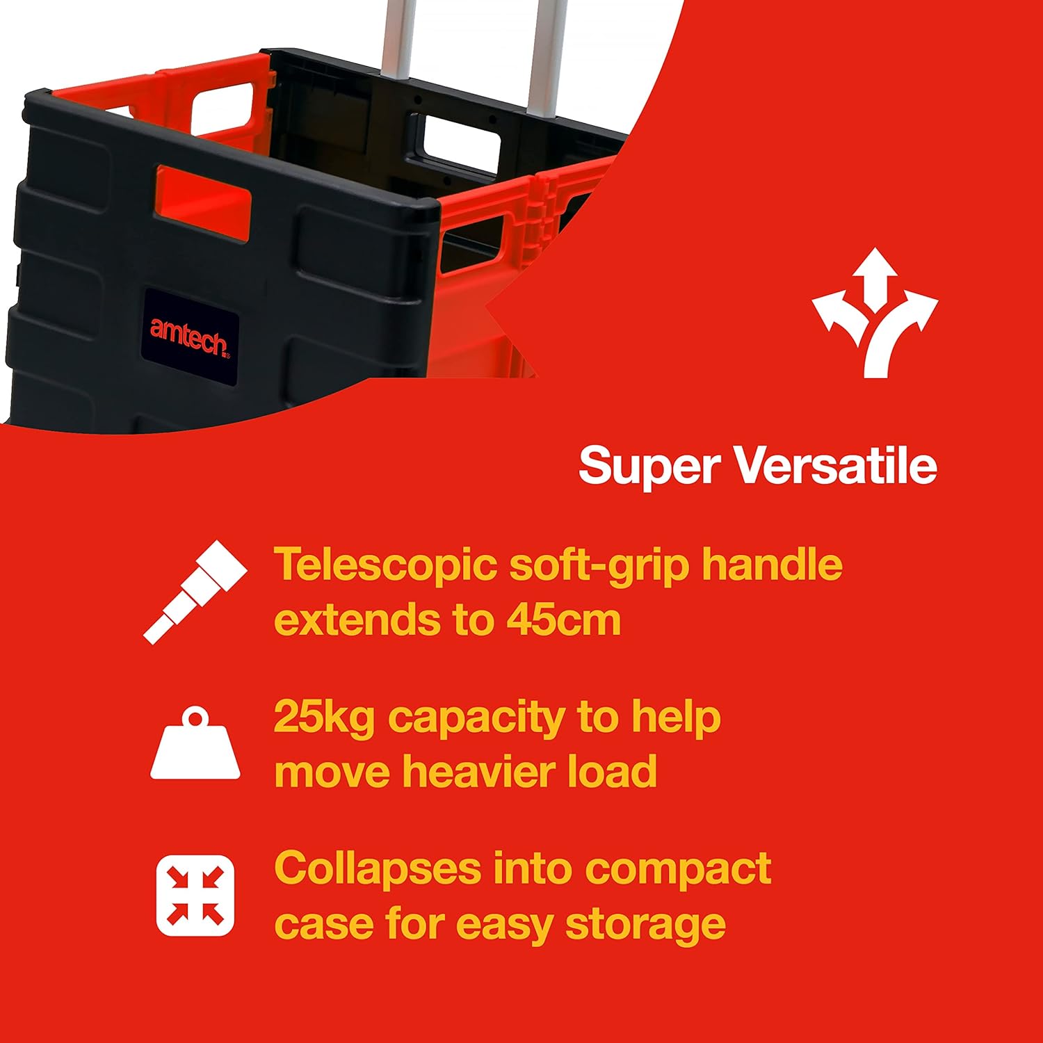 Amtech – Folding Shopping Trolley on Wheels, Easy to Assemble, Collapsible for Easy Transport in Car Boot, Great for Tools, Groceries, and Heavy Loads, Lightweight, Sturdy (25kg Capacity)