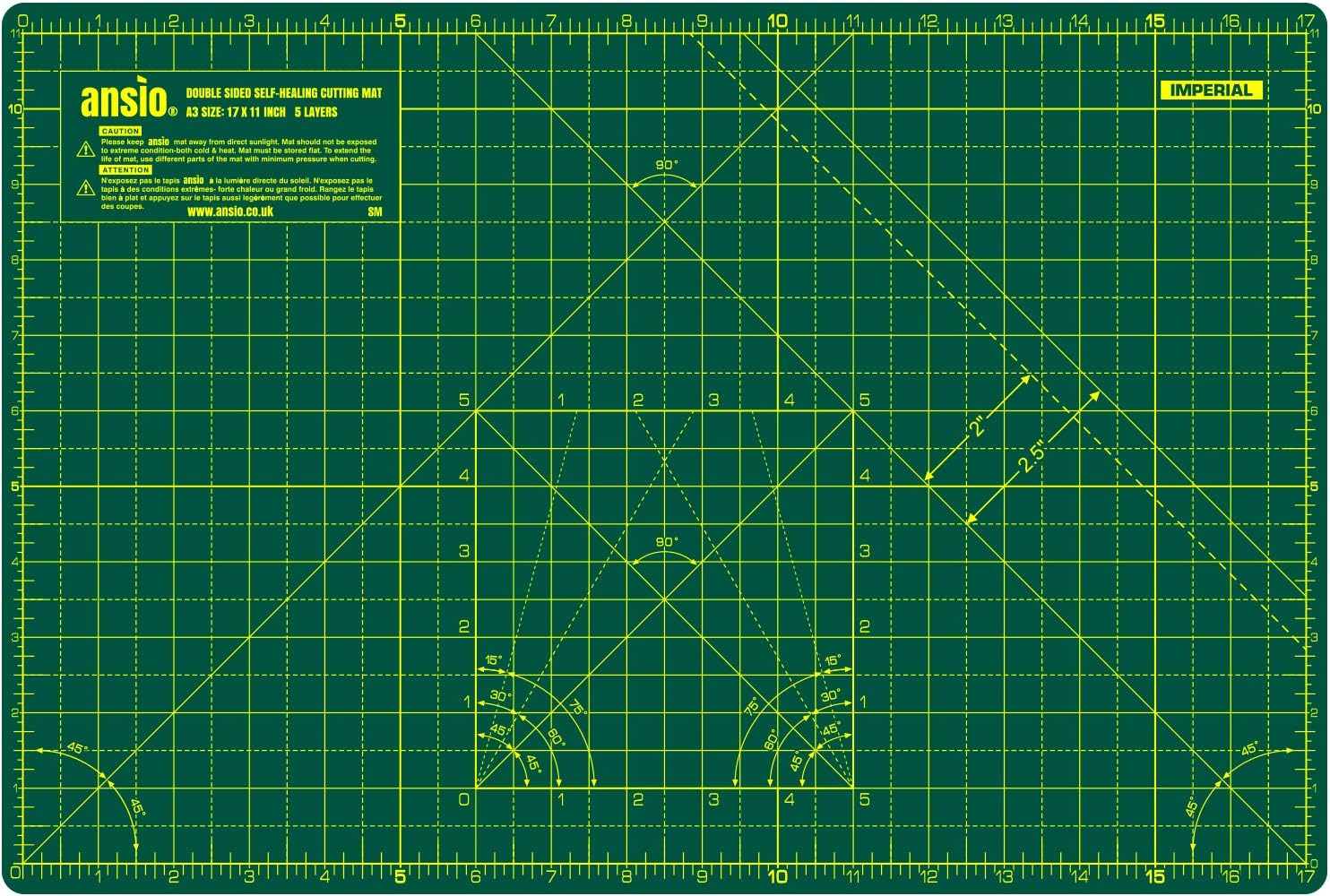 ANSIO’s Double sided cutting mats are indispensable for your quilting, sewing or other craft activities. The mat has Imperial markings on one side and Metric markings on the other side.The double sided mat is Self- Healing and therefore has a Longer shelf life. The A3 mat is of size 17 inch x 11 inch (44 cm x 29 cm) and comes in an attractive green colour on both the sides. To top this up, the mat is fully recyclable.