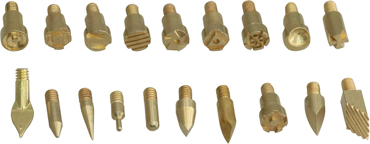 Pyro-Master kit, British plug, pvc cable 230v 15/30w switchable. Comes with a Duel Temperature heated tool, 19 different tips.(10 branding and 9 shading and drawing tips) 1 x wooden key-ring, and 1 x leather fridge magnet. An entry level Duel Temperature pyrography tool. Ideal for simple designs on wood or leather. The kit comes complete with 19 tips, a keyring, and a leather fridge magnet to get you started.