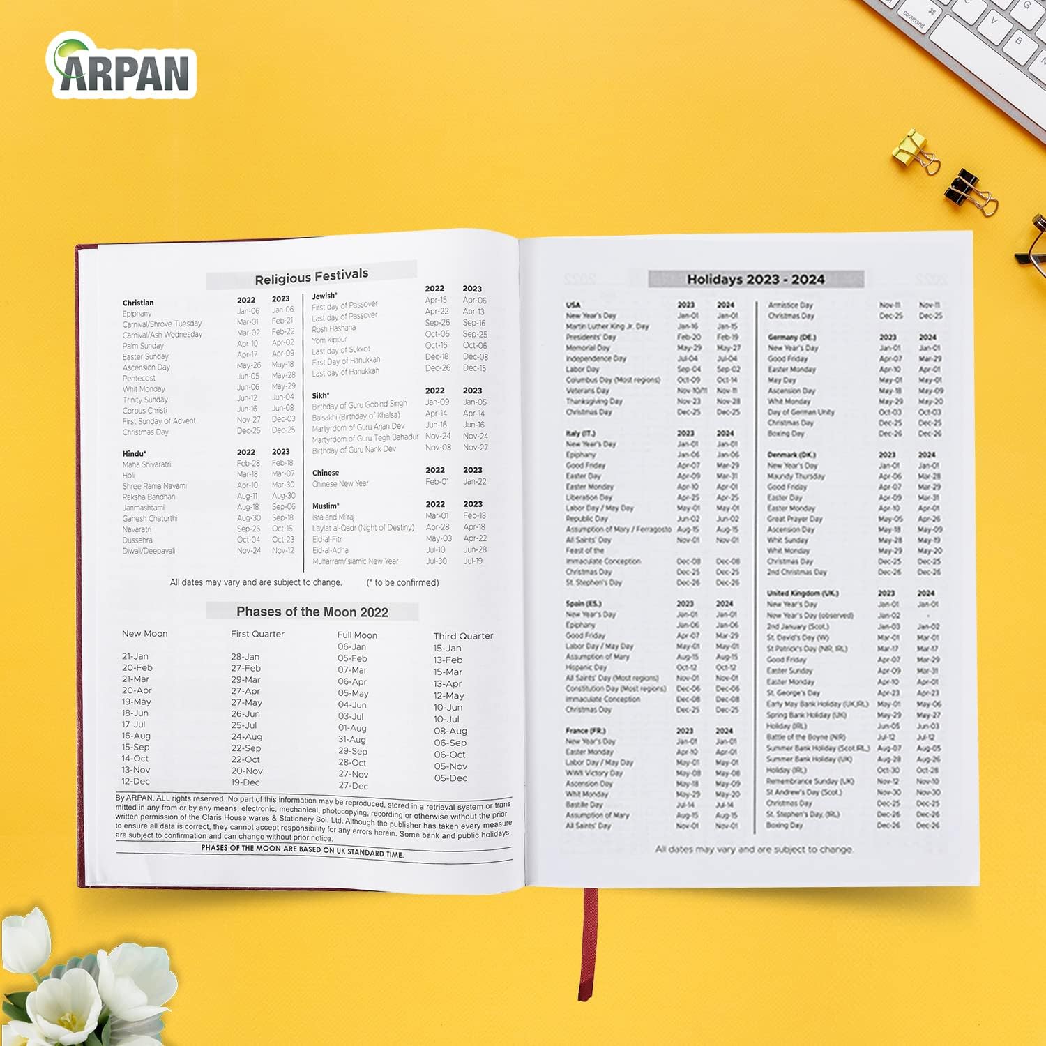 • Durable leather-grain Hardback covers, 2018, 2019 and 2020 Calendar – Phase of the Moon – Metric Information – Common Engineering Conversion Factor – Country code and International dialing code, – Christmas Shopping List, – 2019 & 2020 Religious Festivals, – Pages for Telephone Numbers