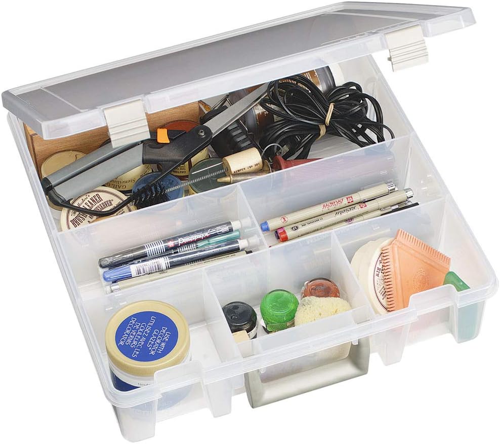 - Features fixed divided-compartments excellent for both large and small supplies, secure latches and carrying handle, extra deep for maximum capacity