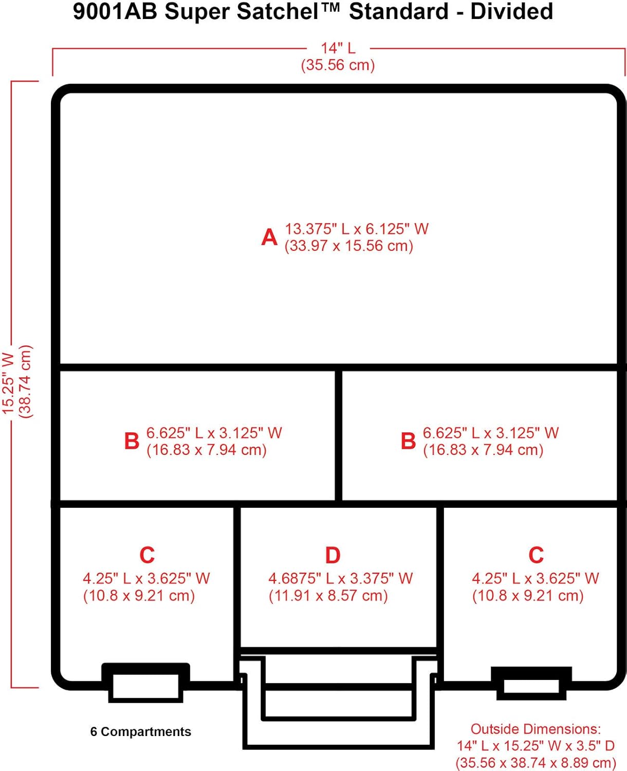 - Product Details: Super Satchel Box measures 15.25 x 14 x 3.5 in. It is available in a translucent color.