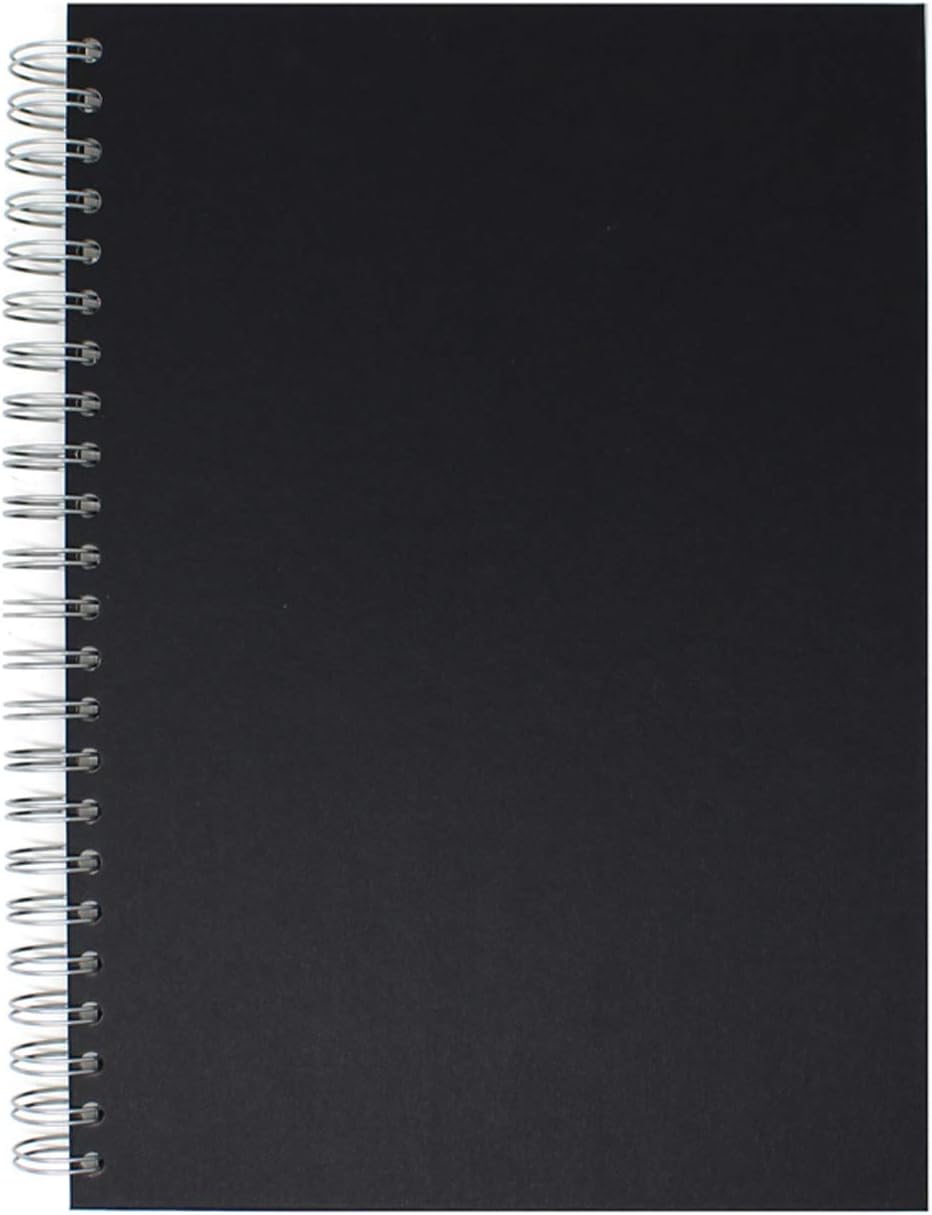 This classically styled spiralbound Studio A4 portrait sketch book is made from grey board covered with black Wibalin cloth (which restricts warping), and a premium heavyweight 170gsm cartridge paper. The spiral binding is silver