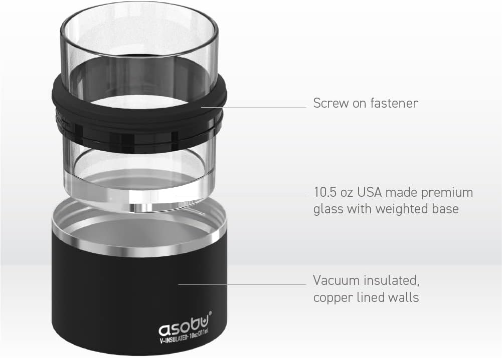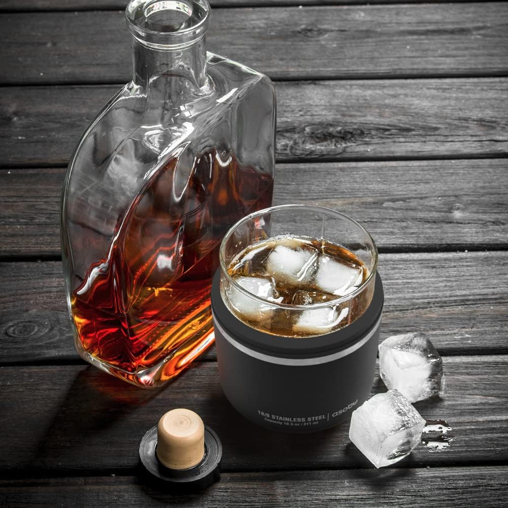 asobu Whiskey Glass with Insulated Stainless Steel Sleeve, 10.5 ounces (Black)