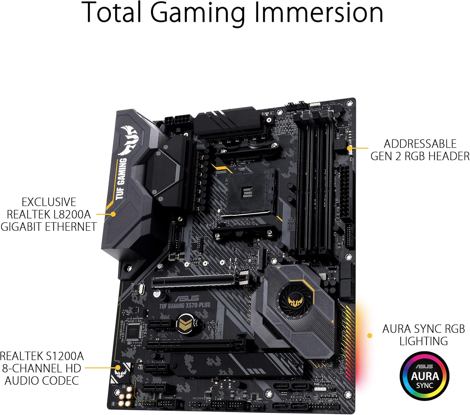 - Realtek S1200A Codec: Pristine audio quality with unprecedented 108 dB signal-to-noise ratio for stereo line-out and 103 dB SNR for line-in.Aura Sync RGB: Synchronize LED lighting with a vast portfolio of compatible PC gear, including addressable RGB strips.TUF Gaming Alliance: ASUS hardware ecosystem ensures the best compatibility and complementary aesthetics from components to case