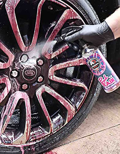 Purple rain 2.0 is a enhanced new formula ph balanced iron remover/cleaner designed to dissolve brake dust and iron contaminants upon contact. Created specifically for cleaning wheels and paintwork, it is also safe for use on other exterior surfaces where iron contaminants are difficult to remove. The new formula Purple rain 2.0 is a more advanced Product with quicker reaction times to remove the heaviest of iron fallout from the surface. Examples of contaminants – railway dust, which can be highly resistant to all but the most aggressive detailing clays, and industrial iron-rich fallout.