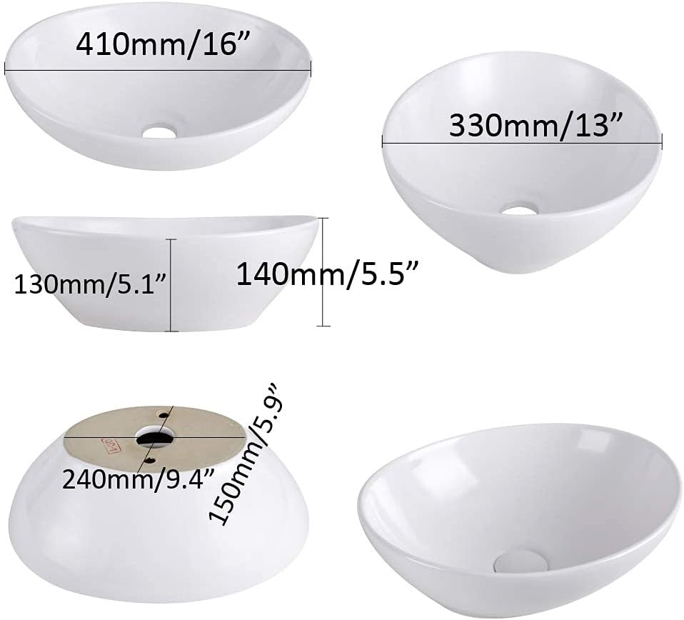 AWESON Porcelain Above Counter Vessel Sink, 16 Inch by 13 Inch, White Ceramic Bathroom Sink, Oval Canoe Shape