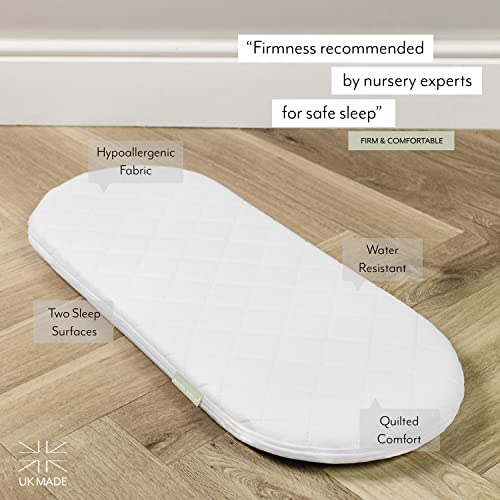 Babies Firsts 66x28x4cm Quilted Foam Moses Basket or Pram Mattress Rounded Both Ends