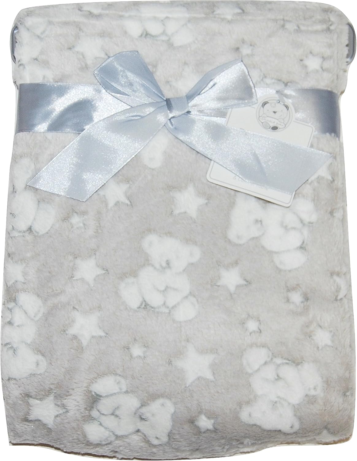Baby Boy Girl Unisex Soft Fleece Wrap Blanket Pram Cot Crib Moses Basket Grey Star Teddy