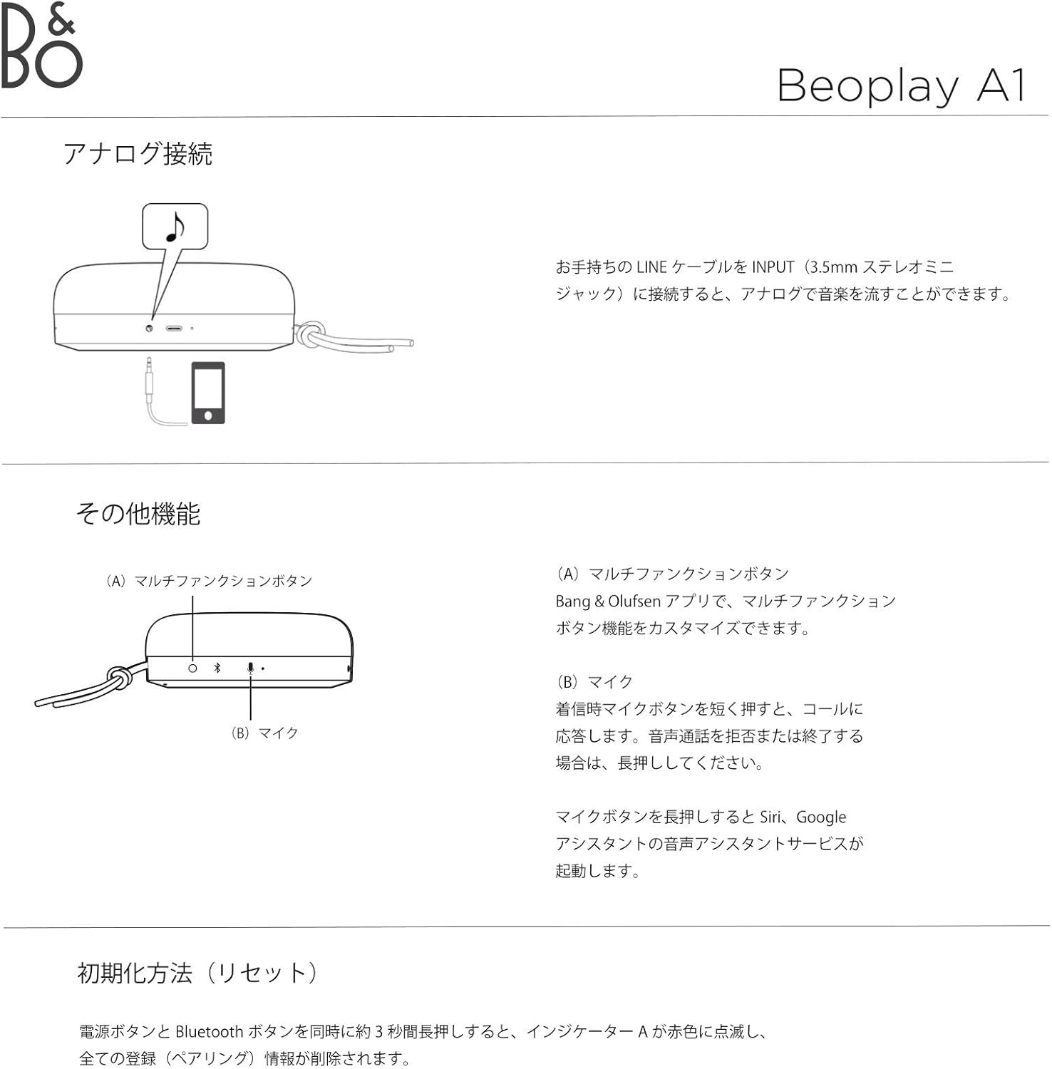 • Connect two BeoplayA1s for a wireless stereo experience