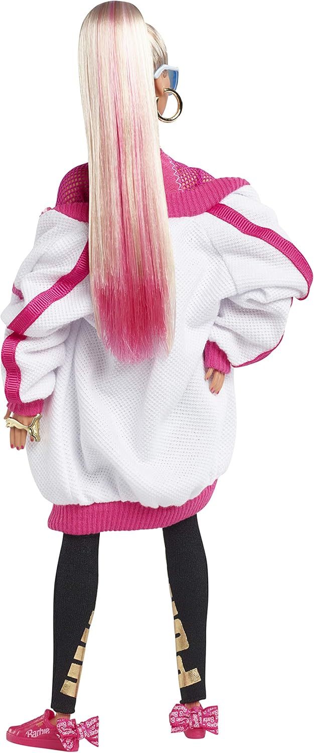 - Featured are PUMA branded leggings, a PUMA and BARBIE branded tank top with mesh sleeves and an oversized track jacket