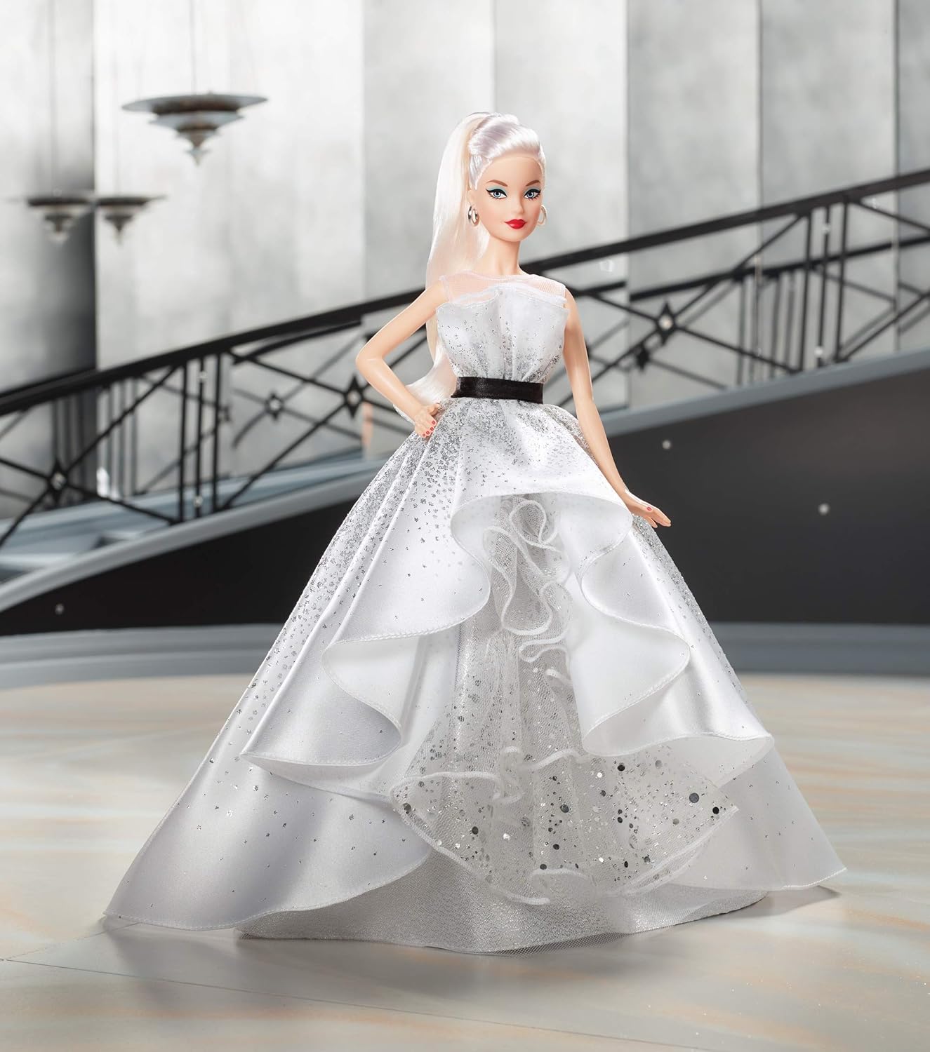 - To commemorate her diamond anniversary, Barbie 60th Anniversary doll’s stunning design twinkles with silvery sparkles and diamond-inspired accents.