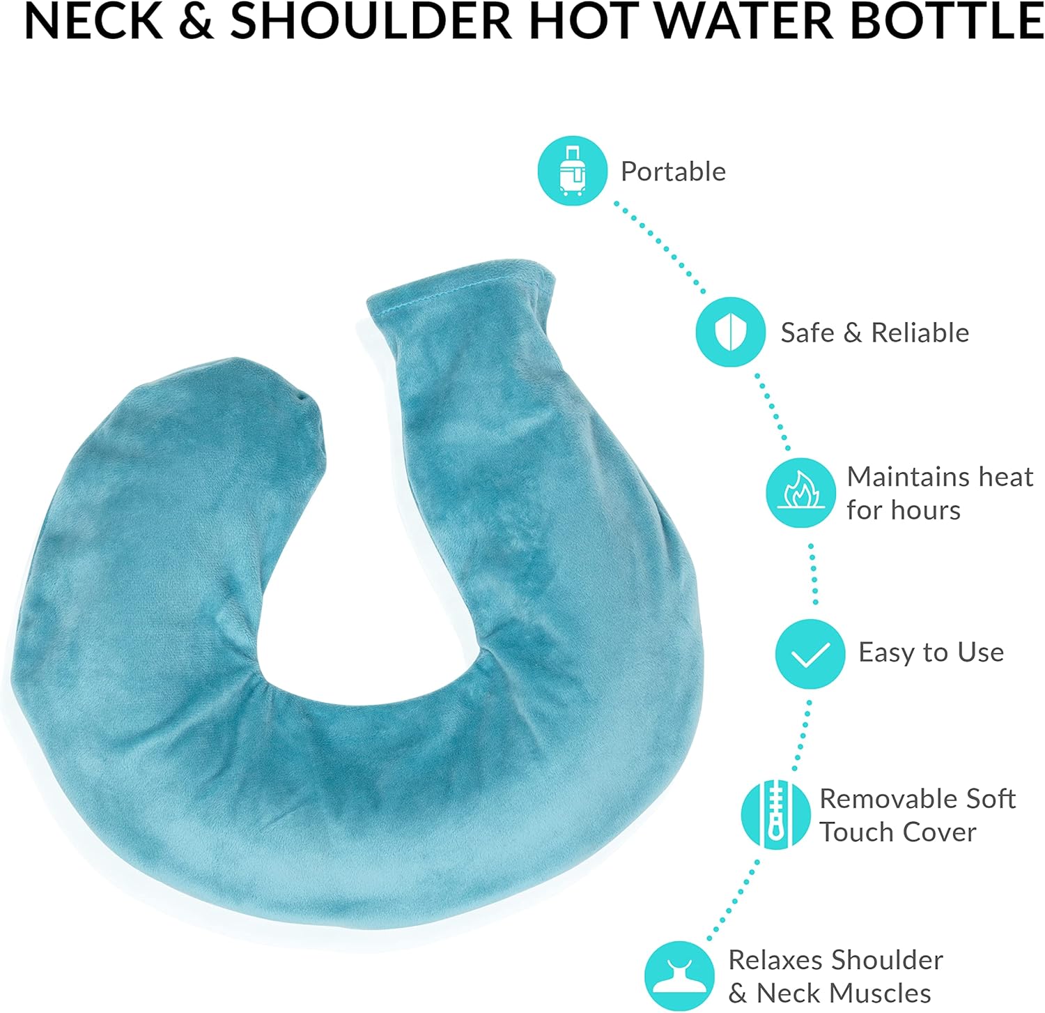 Bauer Professional 60770 Neck and Shoulder Hot Water Bottle | Ease Pain and Relax Muscles | Soft Fleece Cover | Soothe Headaches | Blue