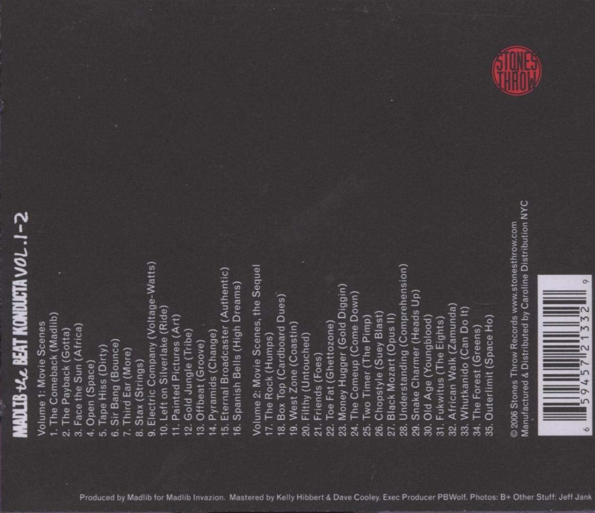 The first two volumes of Madlib’s Beat Konducta series are the soundtrack toa movie that exists only in his mind. It’s score ranges from Blaxploitationsoul to African-psychedelia, to Tropicalia to moody progressive rock, all chopped, composed, and flipped in the unique bugged-out fashion of the one and only Madlib.