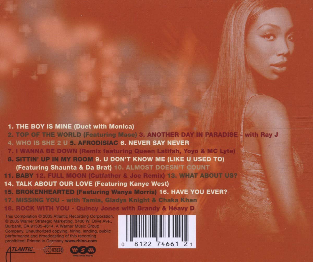 Multimedia phenomenon Brandy rose to superstardom in the ’90s while only in her mid-teens, and was one of the decade’s most successful new talents. Her string of smashes soared to the heights of the R&B and pop charts, as did her top-selling albums. The young recording artist and actress also reaped major acclaim in the television world with her hit sitcom Moesha, and the starring role in Disney’s beloved TV adaptation of Cinderella. Highlights of The Best of Brandy include “Never Say Never”, “Another Day in Paradise” and “The Boy Is Mine”.