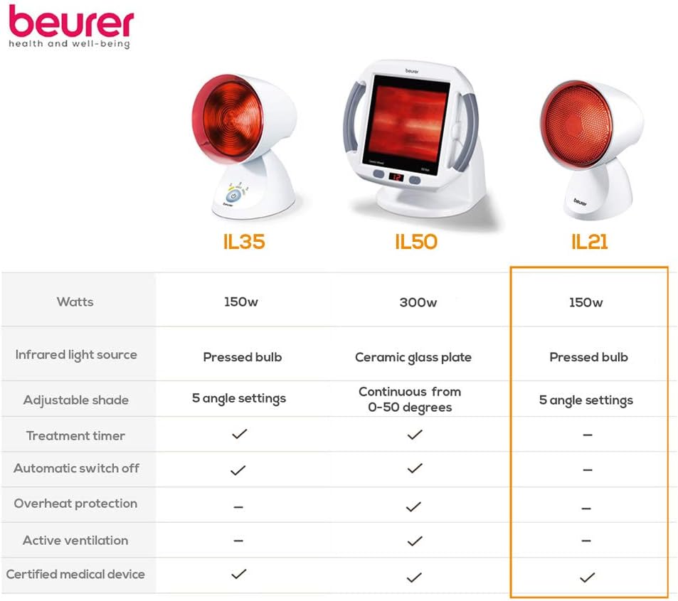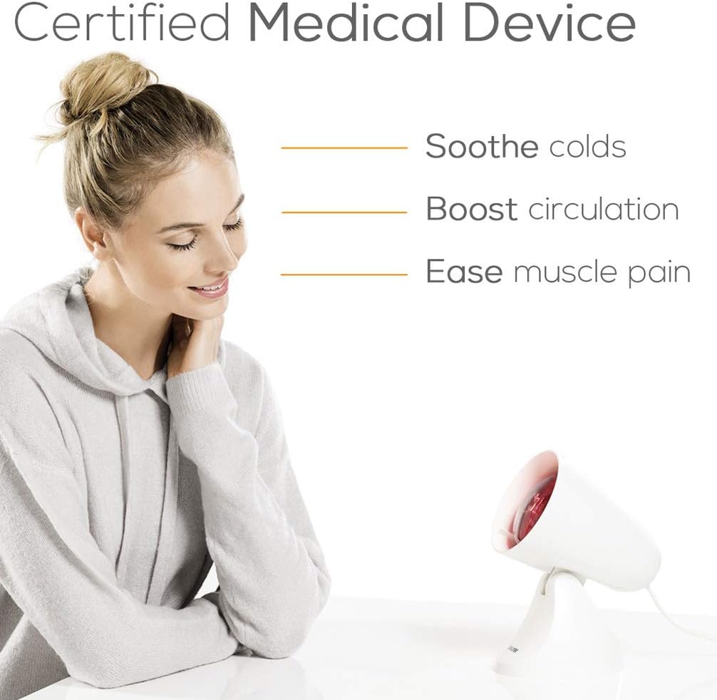 Beurer IL21 Infrared Heat Lamp | Warm and soothing infrared light | Helps ease muscle aches and joint stiffness | Speed recovery from the common cold | Improve complexion | With 5 angles of inclinatio