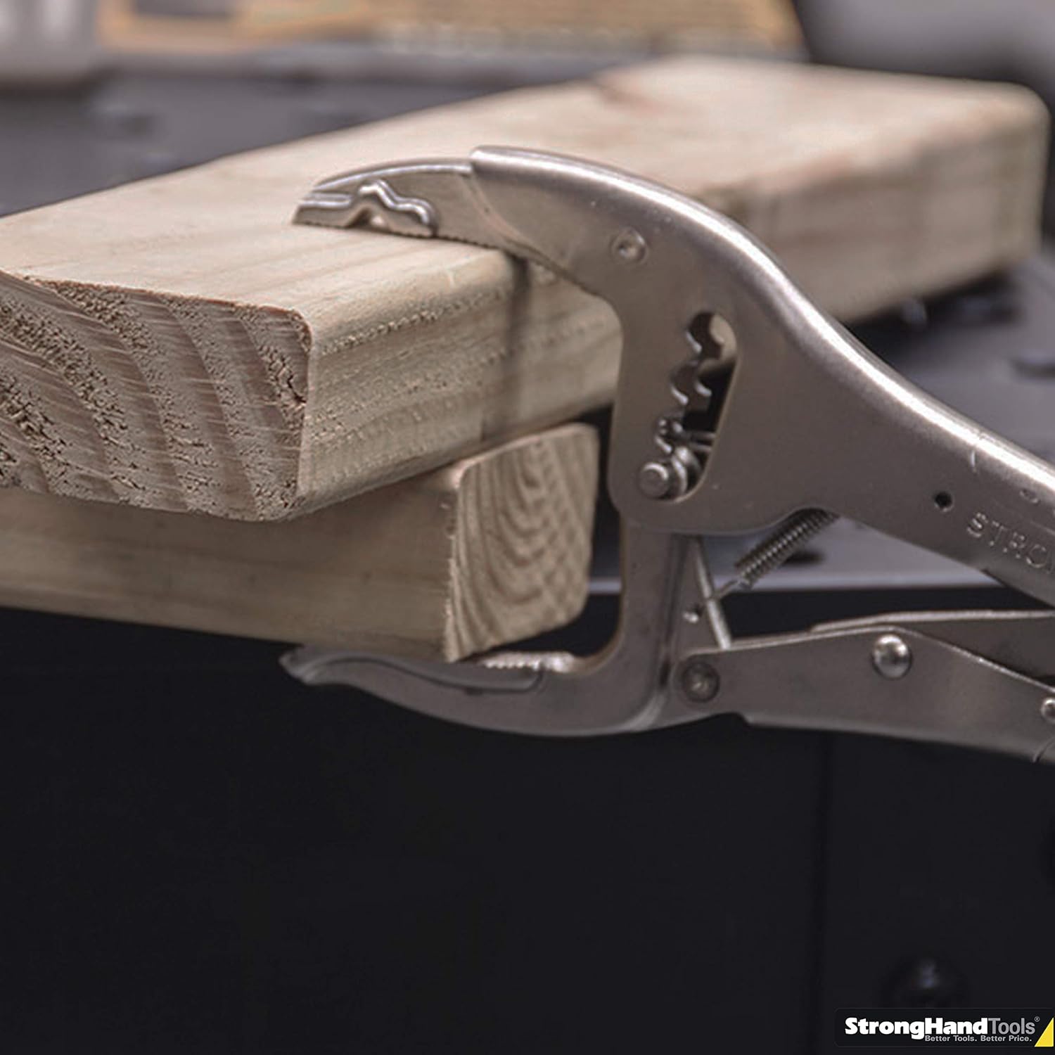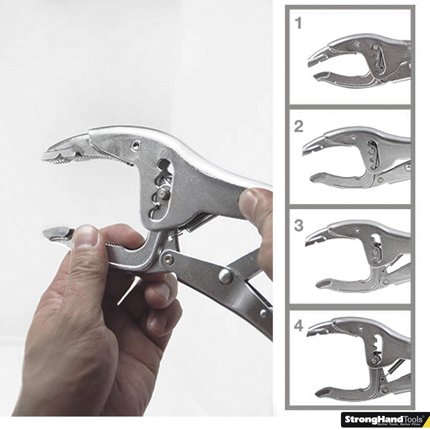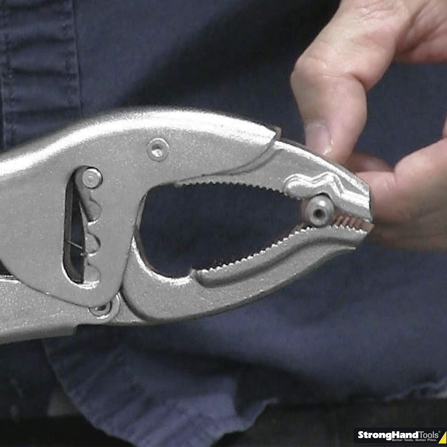 Secure Adjustment Bar minimizes bar pop-outs.Minimal handle spread, even at the maximum opening, make these Pliers easier to grasp, lock, and release. |