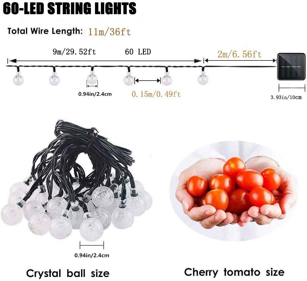 Binteng Solar Christmas Lights Outdoor 60 LED Solar Powered String Lights Waterproof Crystal Ball Decorative Fairy Lights for Garden Patio Yard Home Wedding Christmas Tree Parties, 36ft