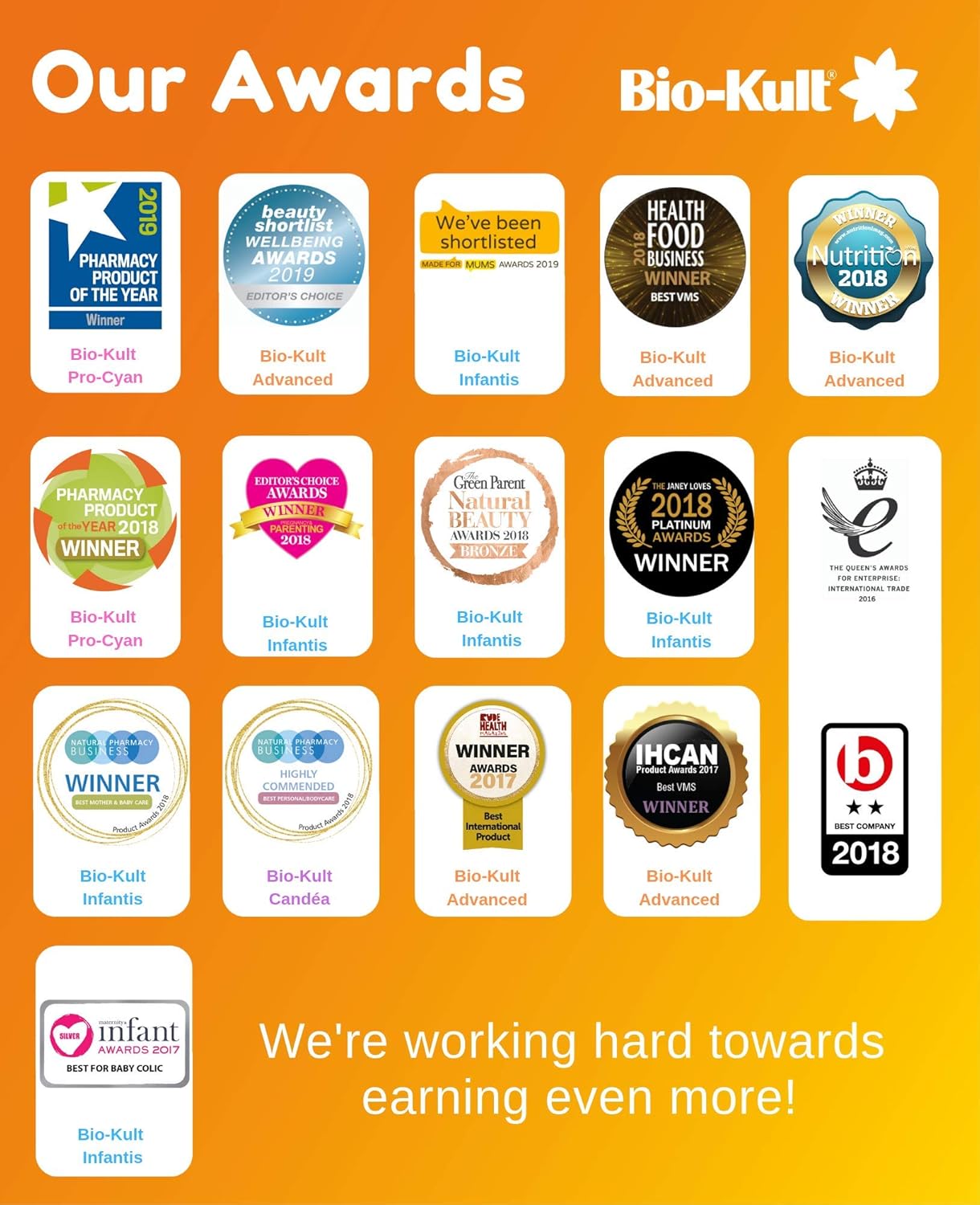 Bio-Kult is a multi-strain probiotic containing 14 strains of probiotics for everyday use. The beneficial bacteria in Bio-Kult are cry protected during the freeze drying process which means they are protected from the harsh acid environment of the stomach and are therefore able to colonies the full length of the gastrointestinal tract. Also the process allows Bio-Kult to be stored at room temperature without needing to be refrigerated. Bio-Kult can be used on a continuous basis or for short periods of time.