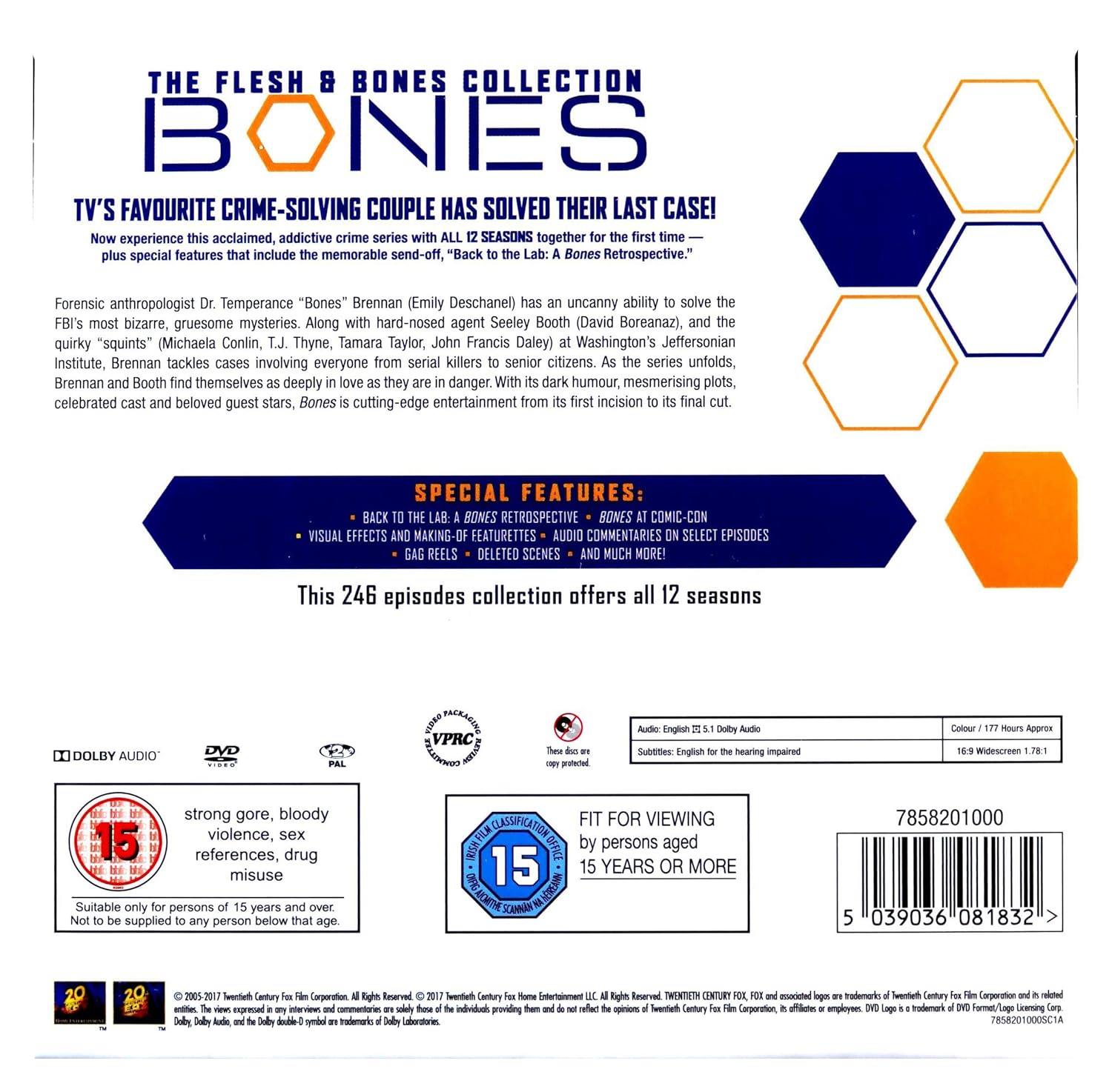 Experience this acclaimed, addictive crime series with ALL 12 SEASONS together for the first time — plus special features that include the memorable send-off, “Back to the Lab: A Bones Retrospective. Forensic anthropologist Dr. Temperance Bones Brennan (Emily Deschanel) has an uncanny ability to solve the FBI’s most bizarre, gruesome mysteries. Along with hard-nosed agent Seeley Booth (David Boreanaz), and the quirky squints (Michaela Conlin, T.J. Thyne, Tamara Taylor, John Francis Daley) at Washington’s Jeffersonian Institute, Brennan tackles cases involving everyone from serial killers to senior citizens. As the series unfolds, Brennan and Booth find themselves as deeply in love as they are in danger. With its dark humour, mesmerising plots, celebrated cast and beloved guest stars, Bones is cutting-edge entertainment from its first incision to its final cut.